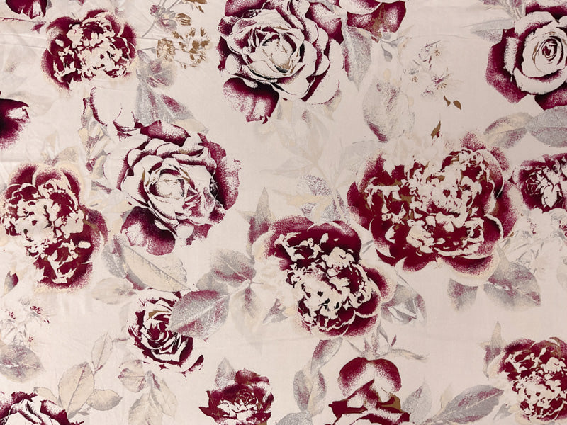 Gray-Purple-Multi Rayon Floral Printed Challis Woven Fabric