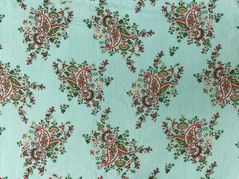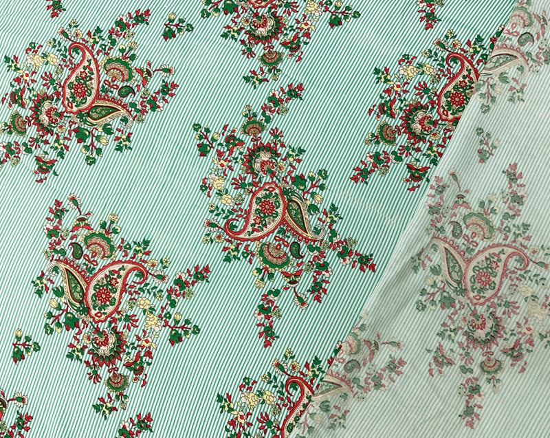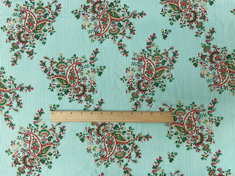 Green-White-Multi Rayon Paisley Stripe Printed Challis Woven Fabric