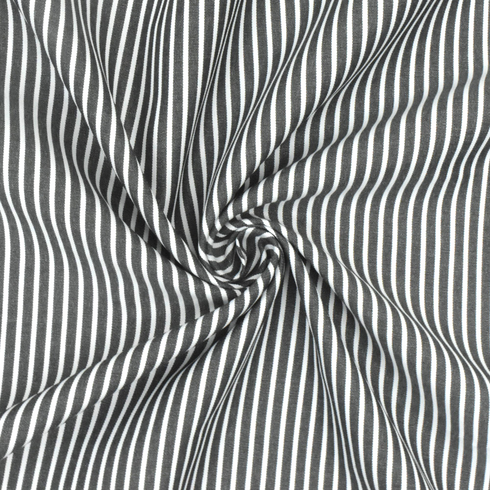 Intense White-Black Stripe Polyester Shirting Woven Fabric