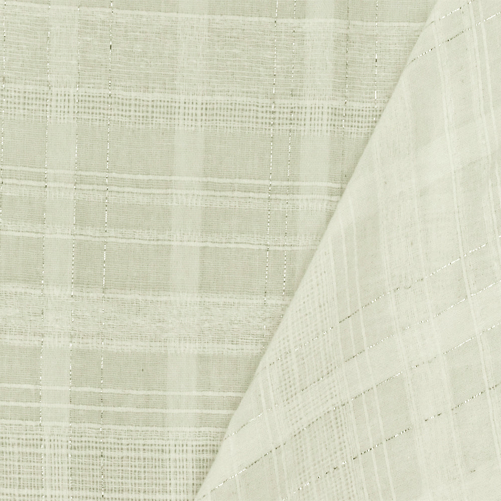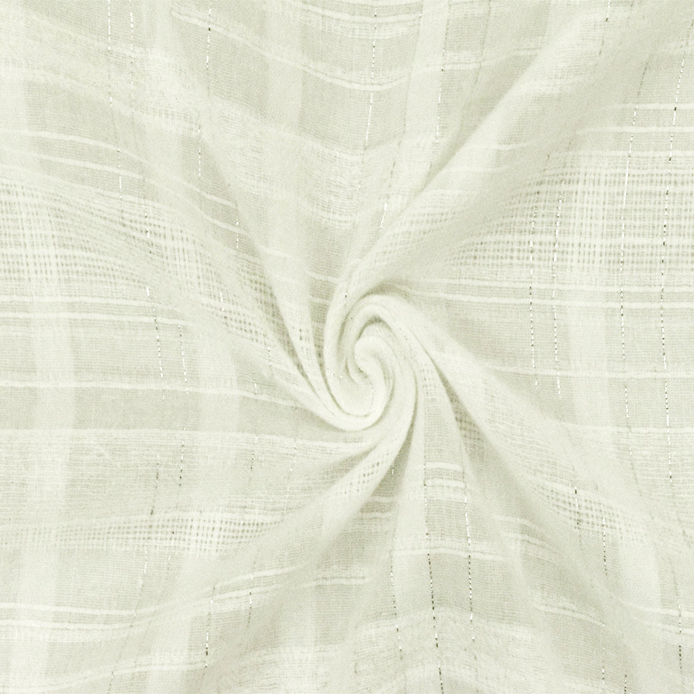 -Famous designer semi-sheer plaid inspired texture woven fabric with hints of silver metallic stripes for that added sparkle