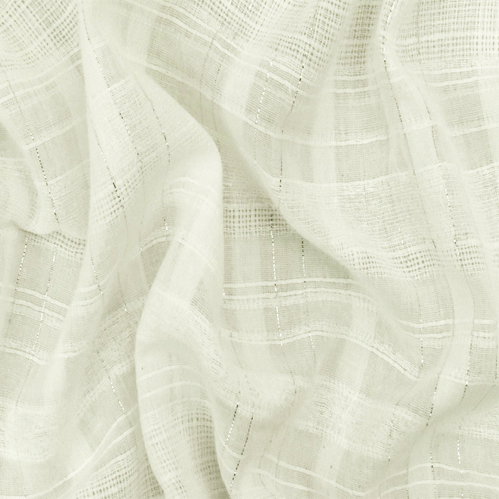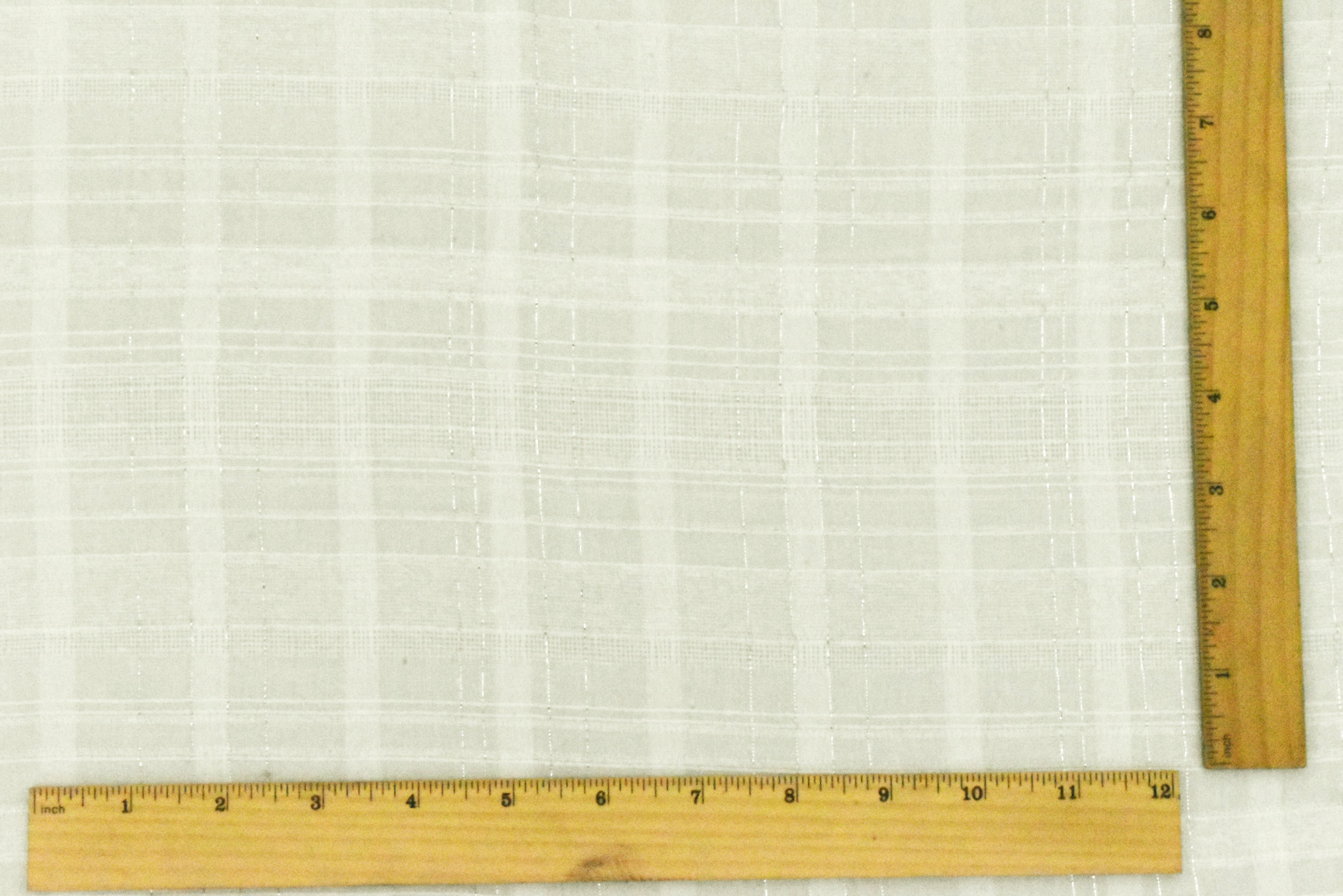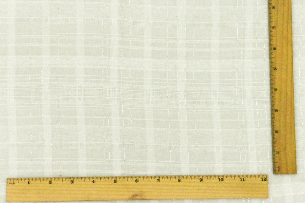 Ivory-Silver Famous Designer Semi-Sheer Plaid Texture Woven Fabric