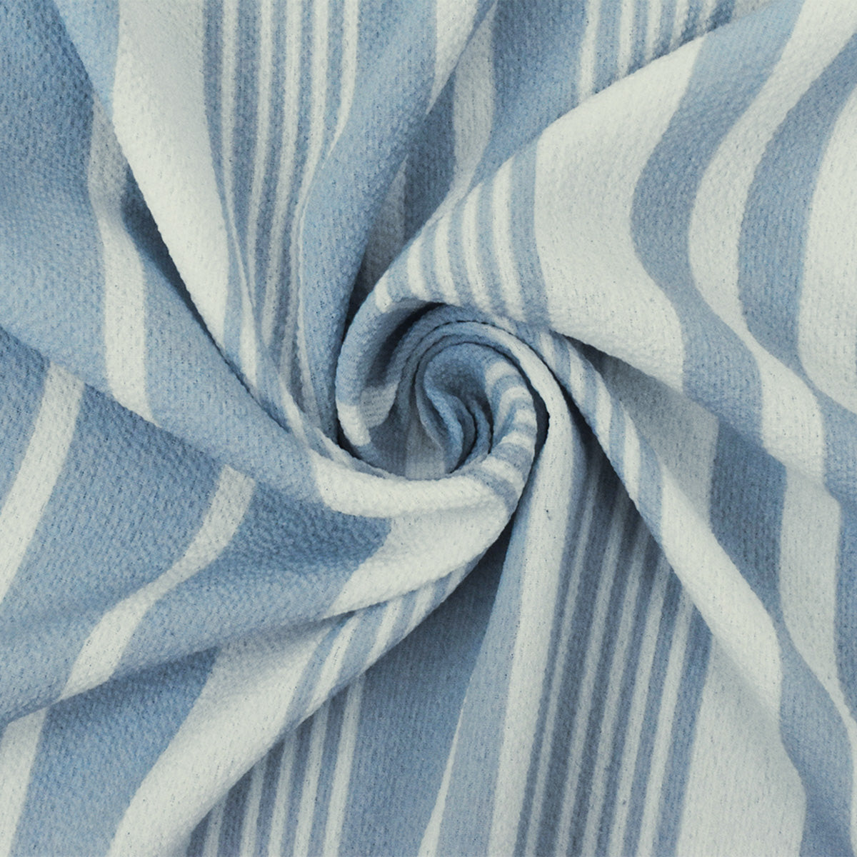 Light Blue-White Stripe Printed Poly Pebble Crepe Woven Fabric