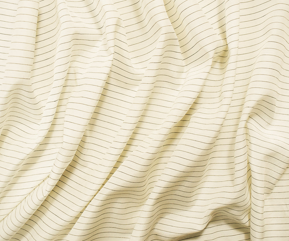 Light Ivory-Black Rayon Japanese Horizontal Pinstripe Lawn Woven Fabric