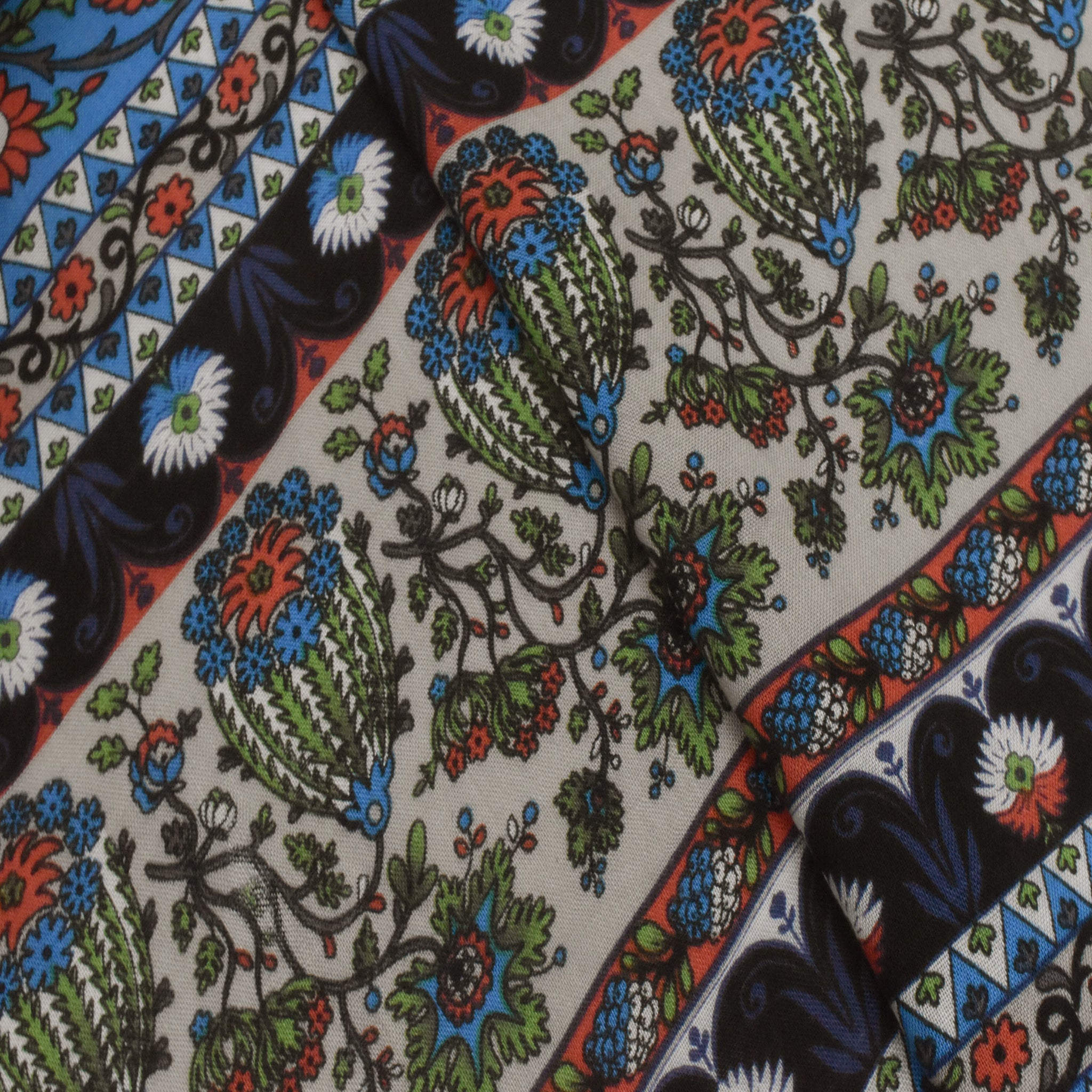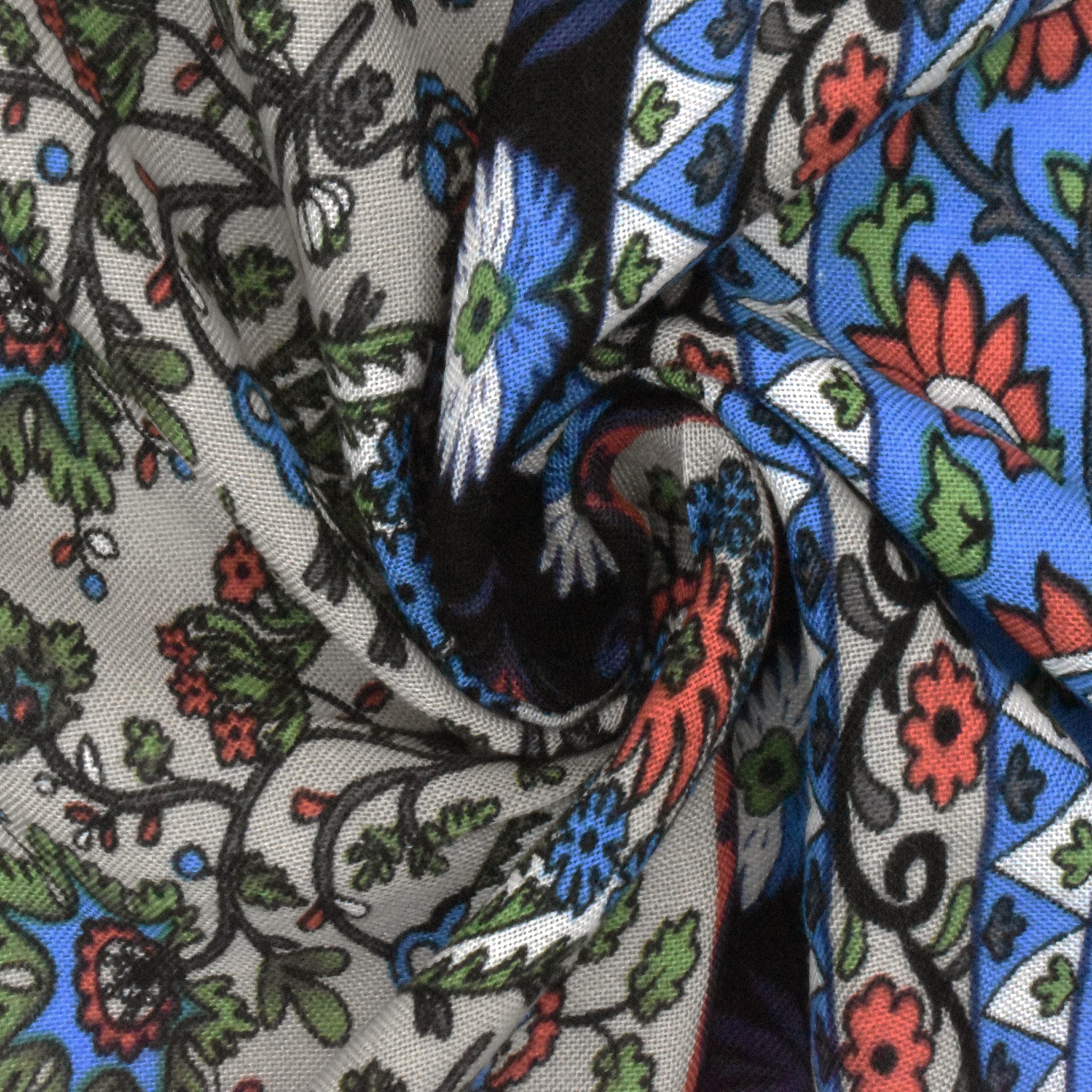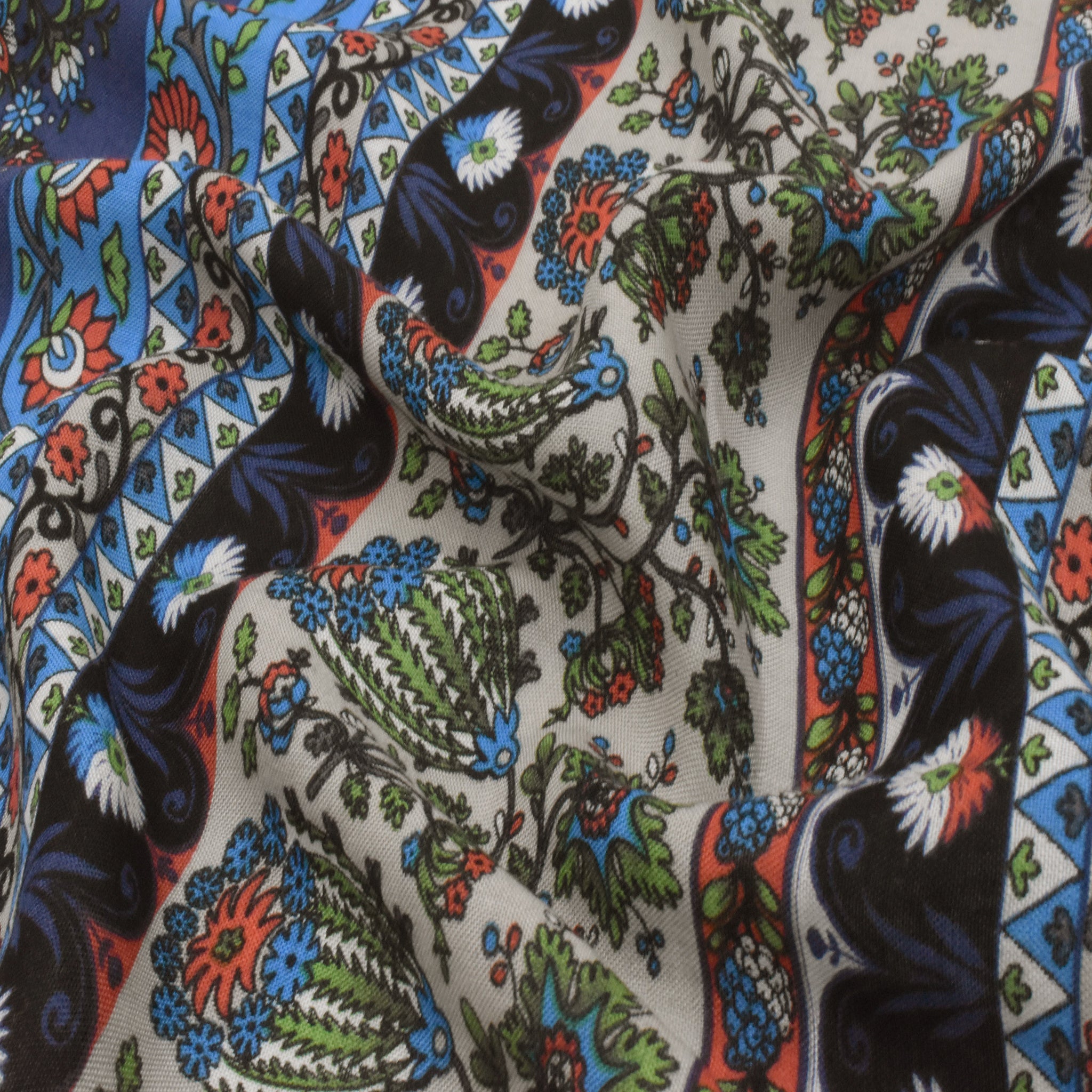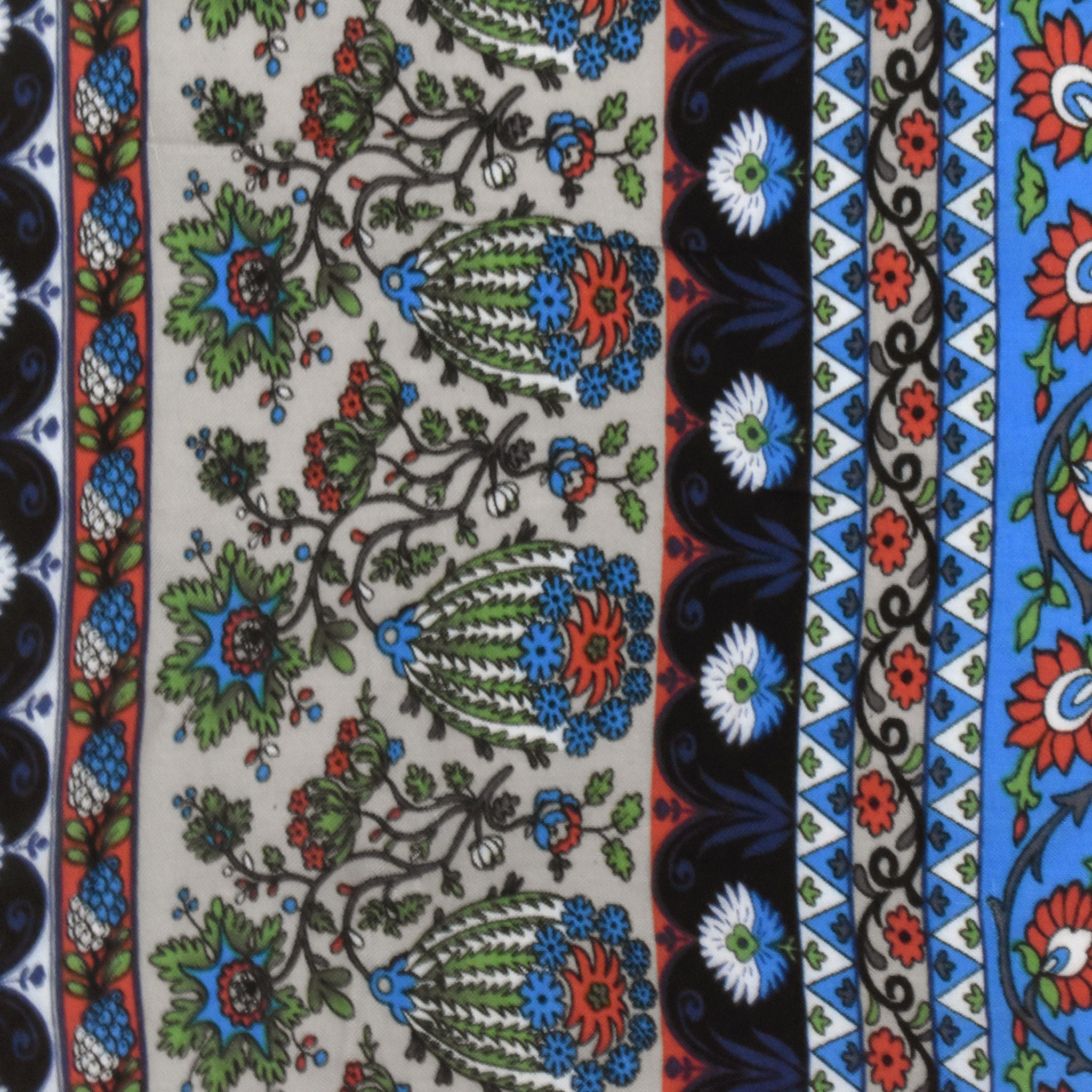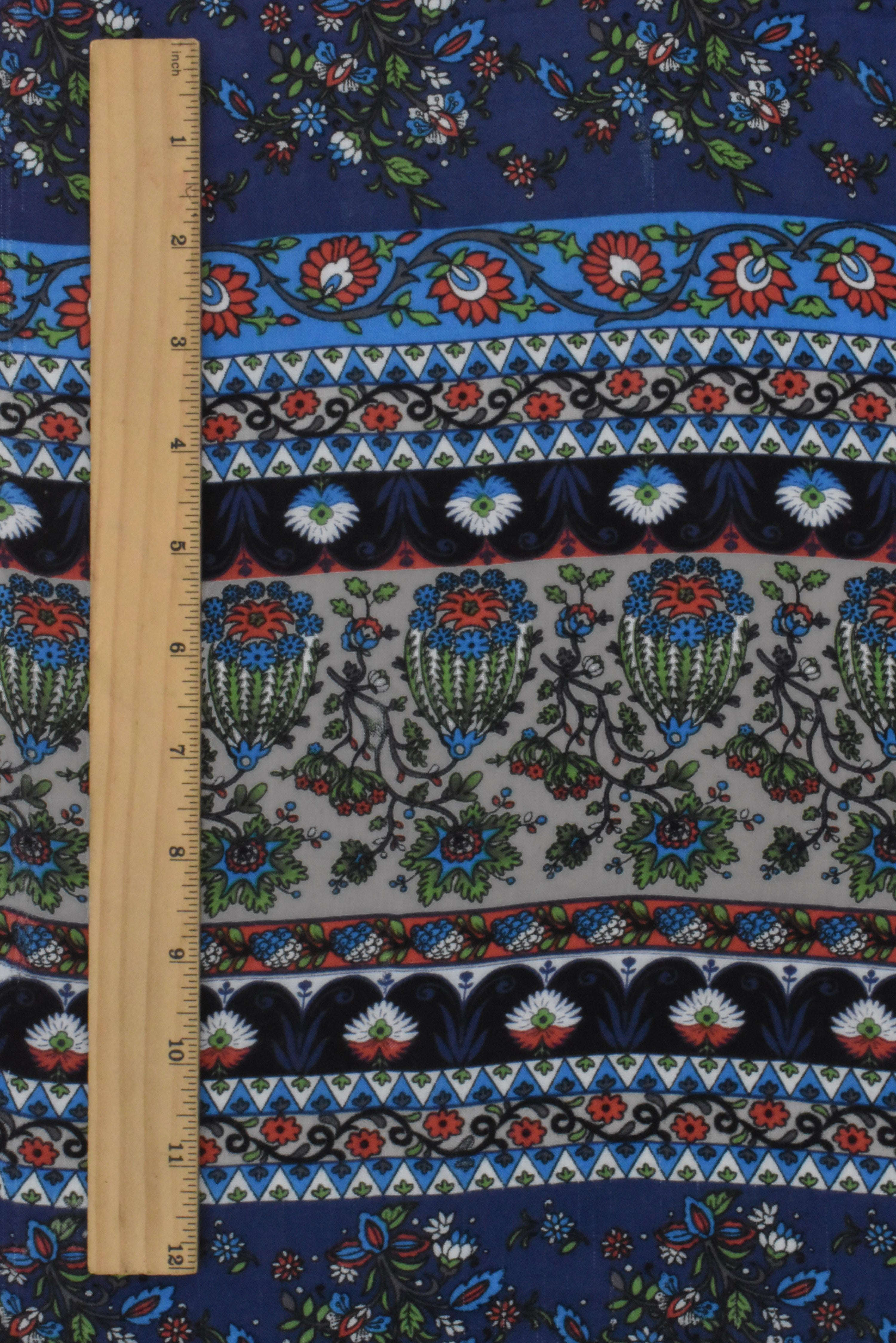 Navy-Green-Multi Floral Stripe Printed Challis Woven Fabric