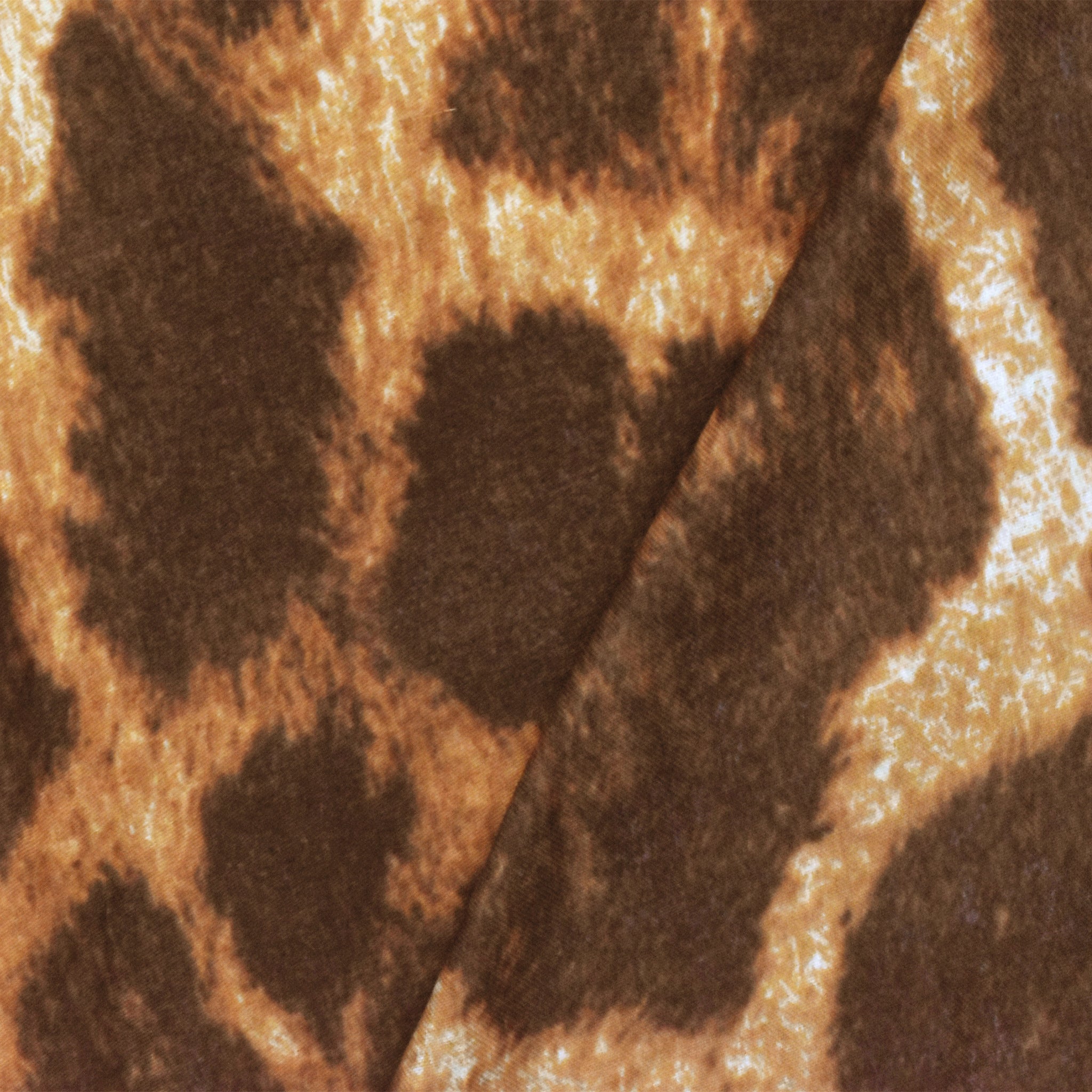 -Low luster twill cotton charmeuse-like woven fabric printed with a giraffe pattern, made in Japan