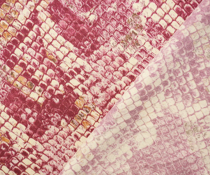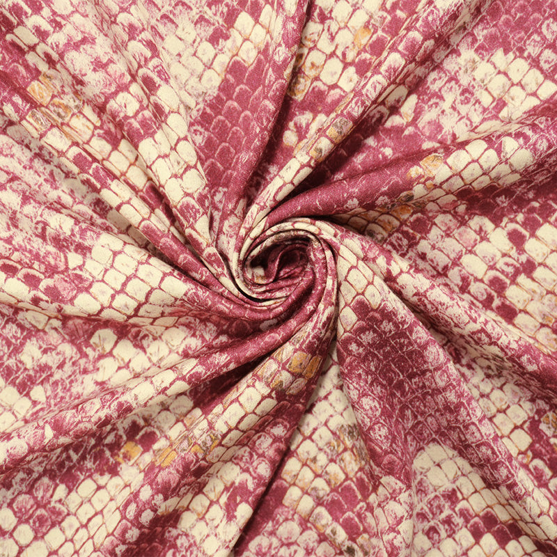 Pink-Beige-Red Rayon Reptile Printed Twill Satin Woven Fabric
