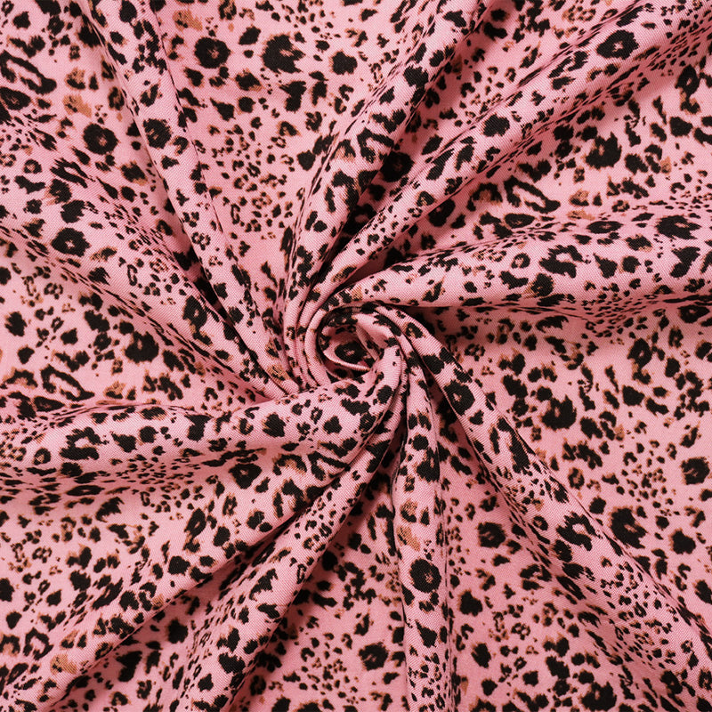 Pink-Black-Brown Rayon Leopard Printed Challis Woven Fabric
