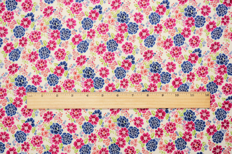 -This rayon fabric showcases an all-over floral print on a lightweight voile base. The soft woven construction provides a beautiful fluid drape, ideal for creating blouses.
