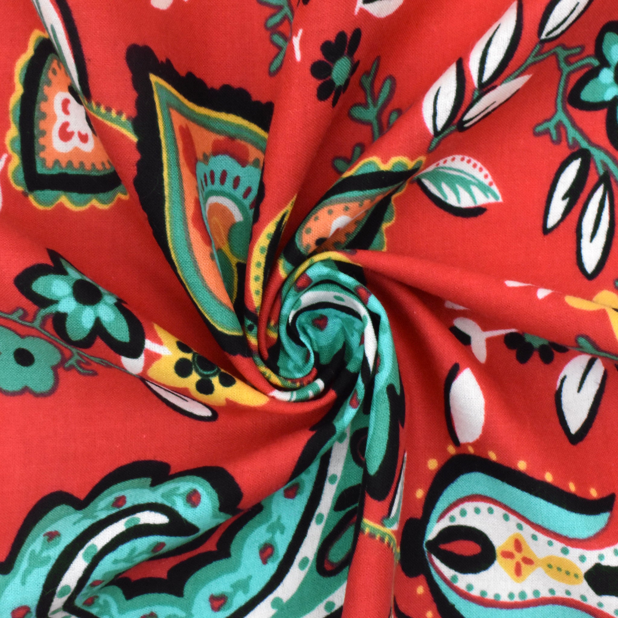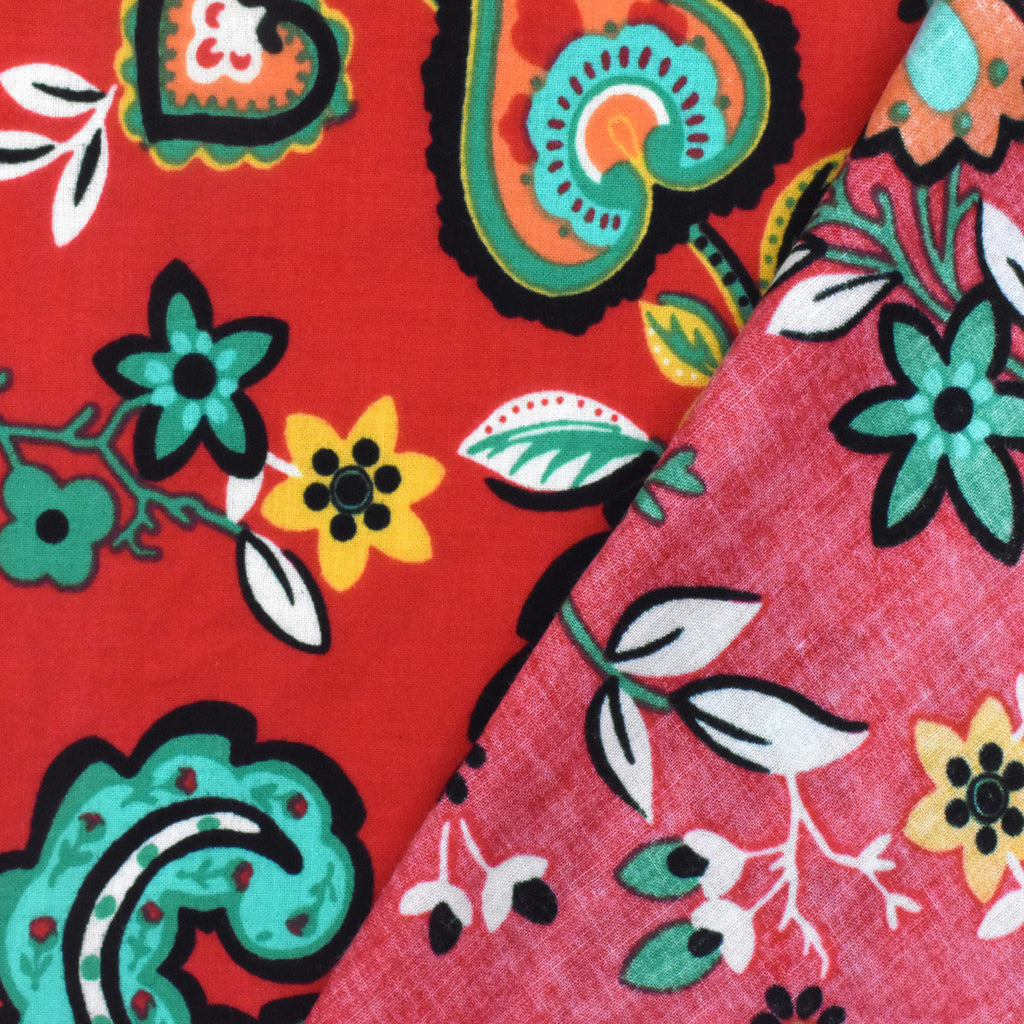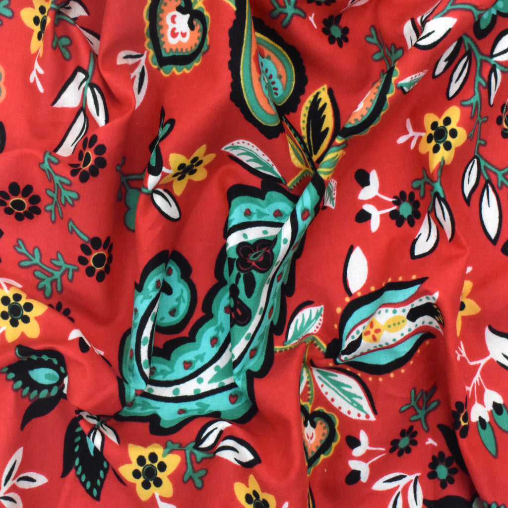 Red-Teal-Multi Cotton Floral Printed Batiste Woven Fabric