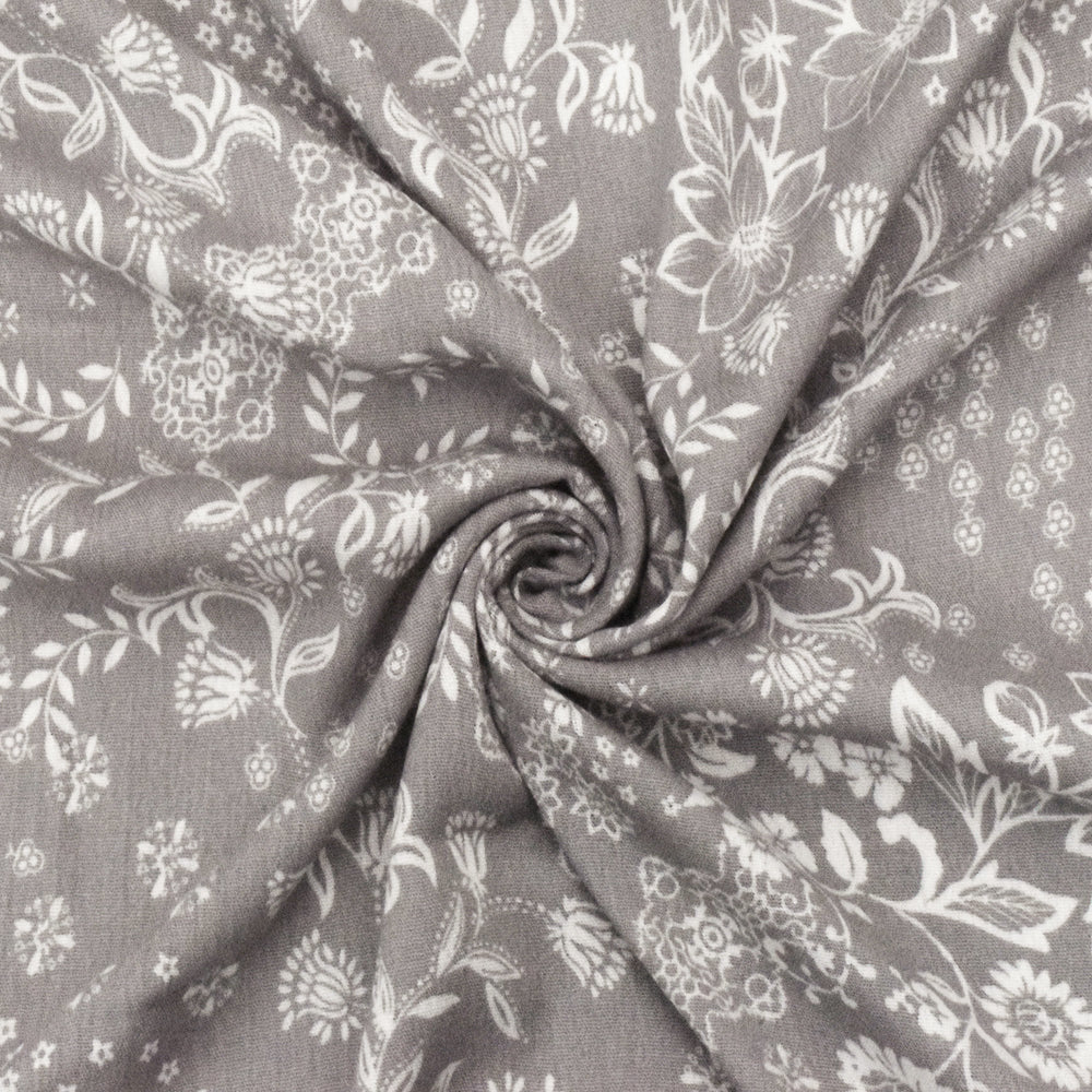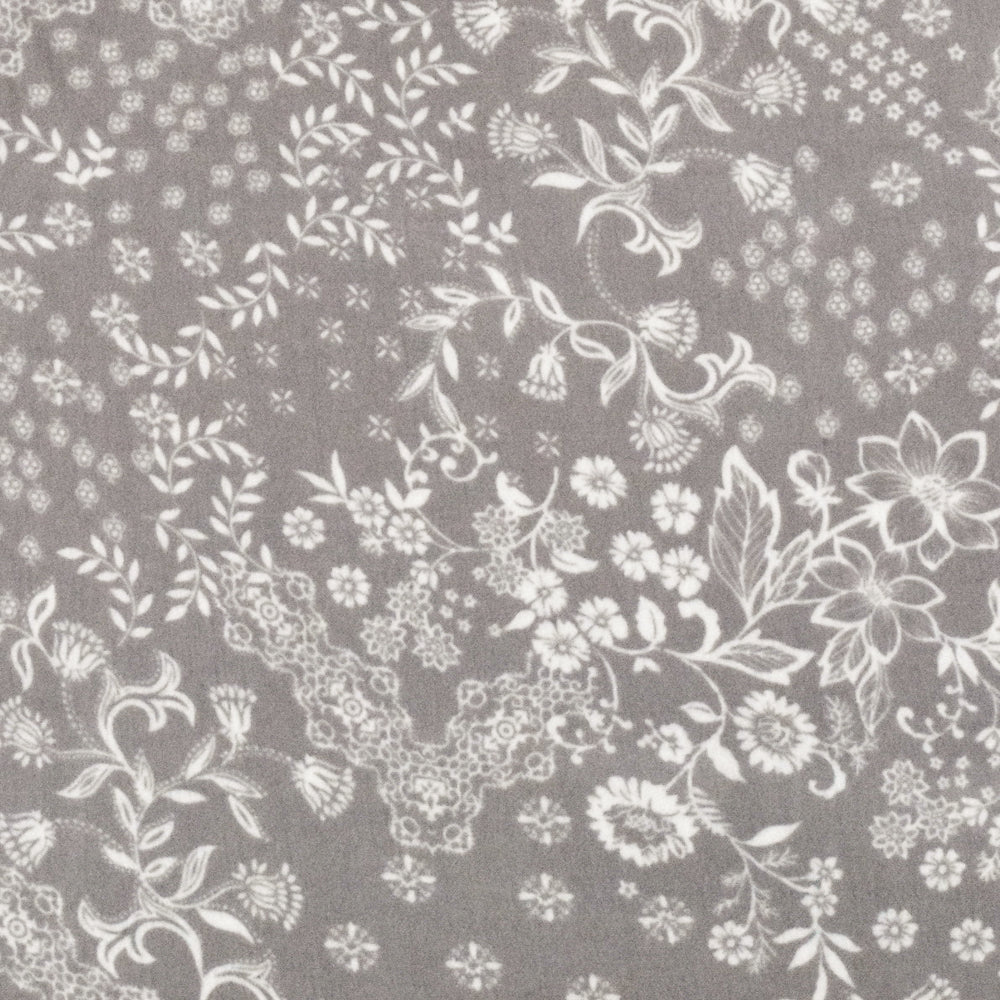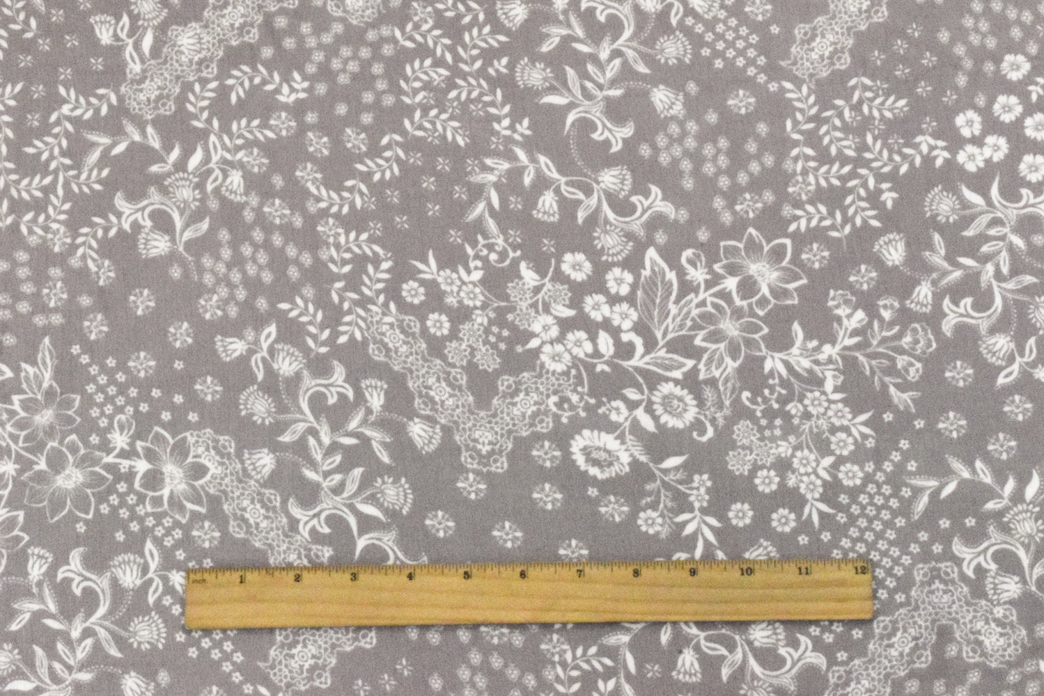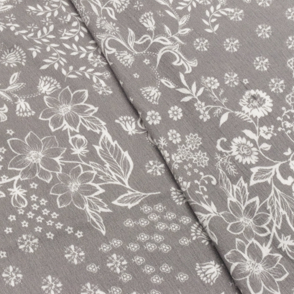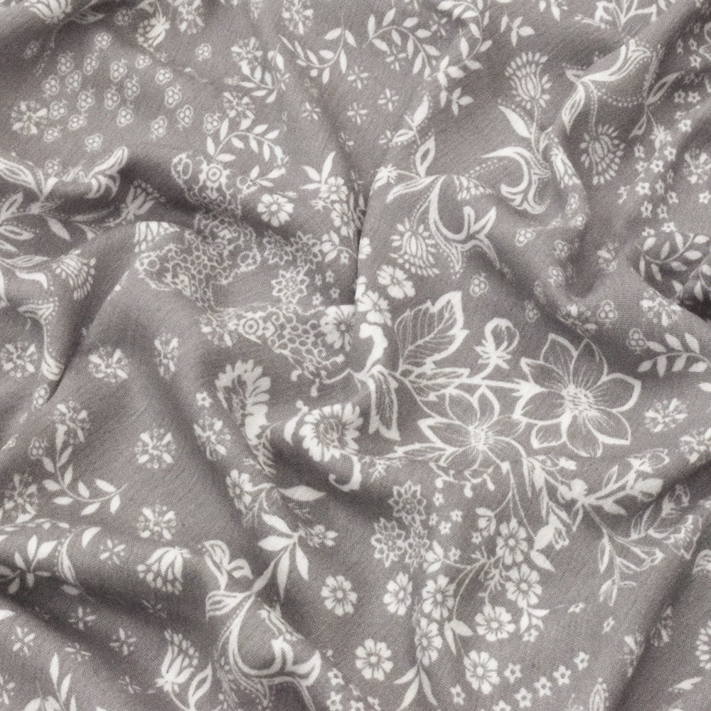 Space Gray-White Floral Printed Rayon Crepon Woven Fabric