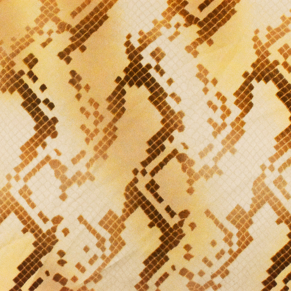 Sunshine Yellow-Brown-Beige Snake Printed Poly Charmeuse Satin Woven Fabric