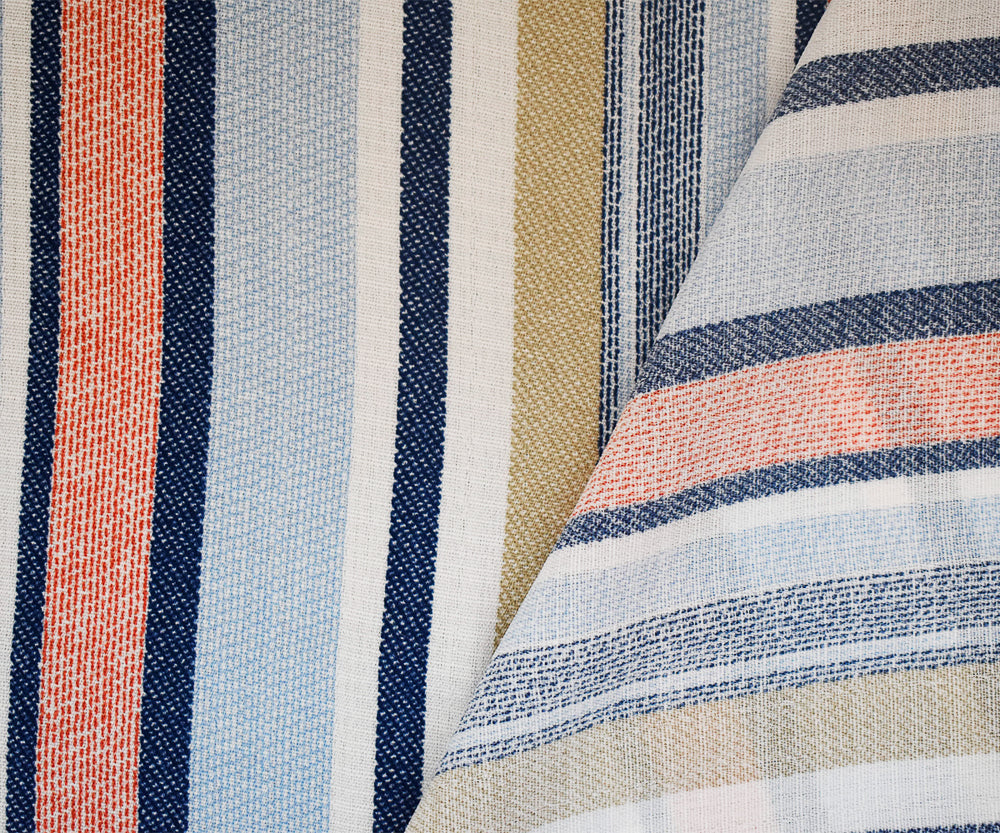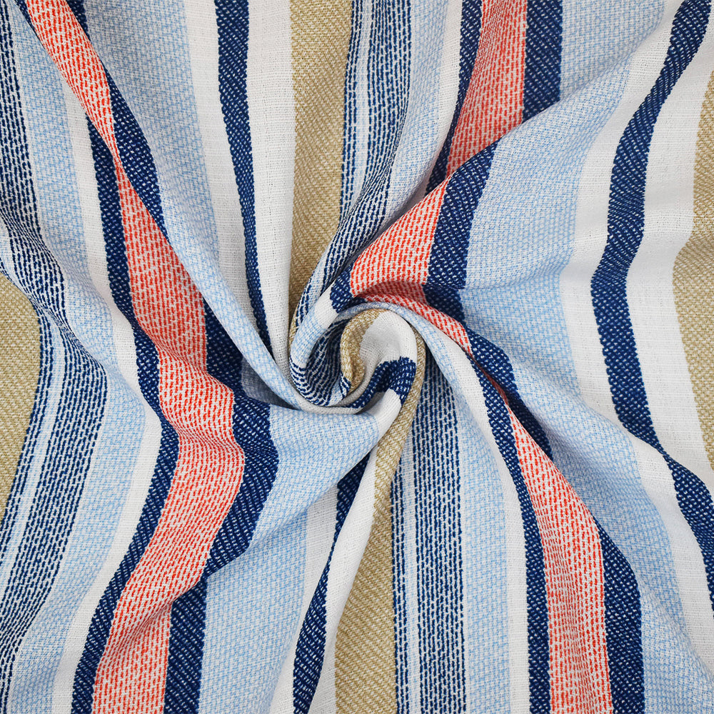 White-Blue-Multi Stripe Printed Poly Shirting Woven Fabric