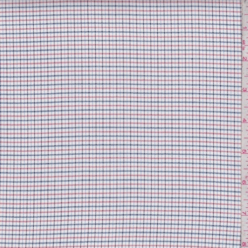 White/Red/Navy Mini Check Oxford Shirting Fabric