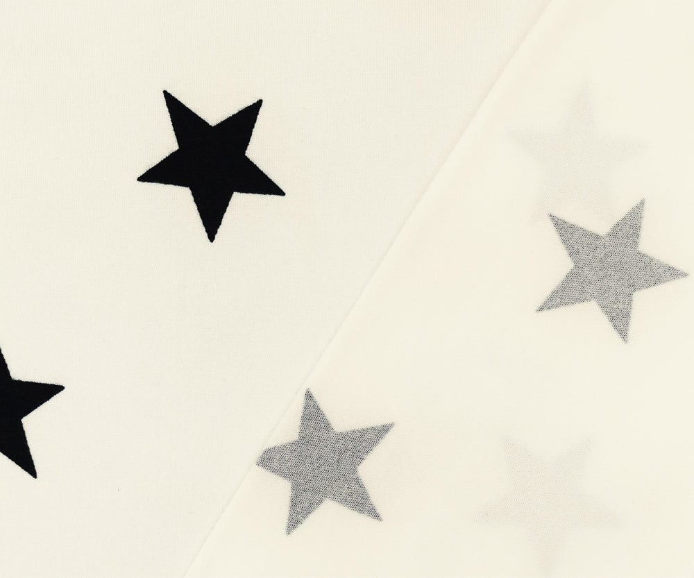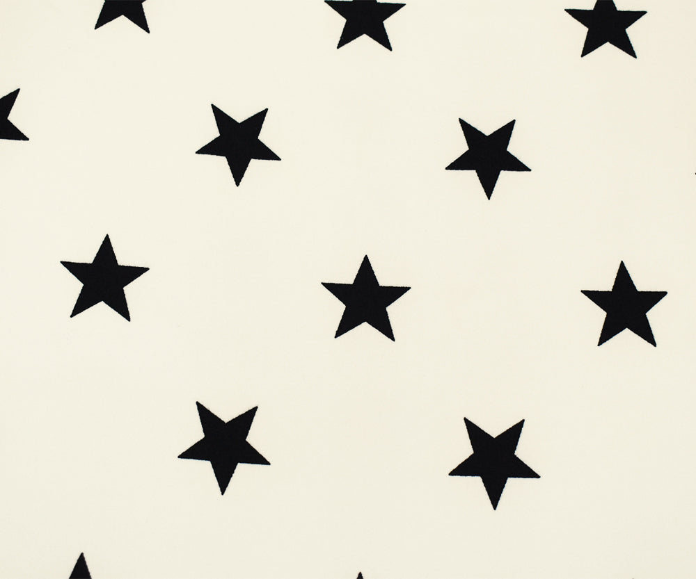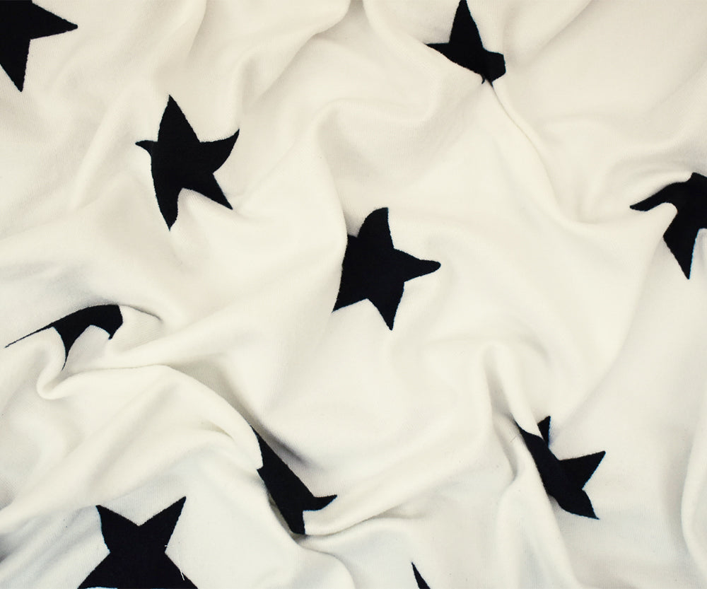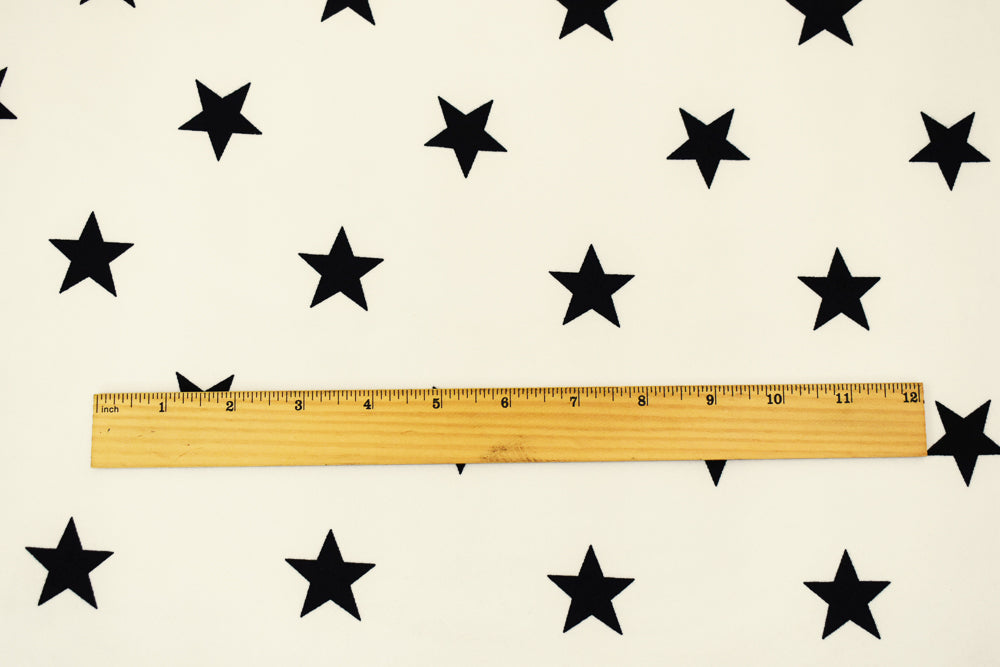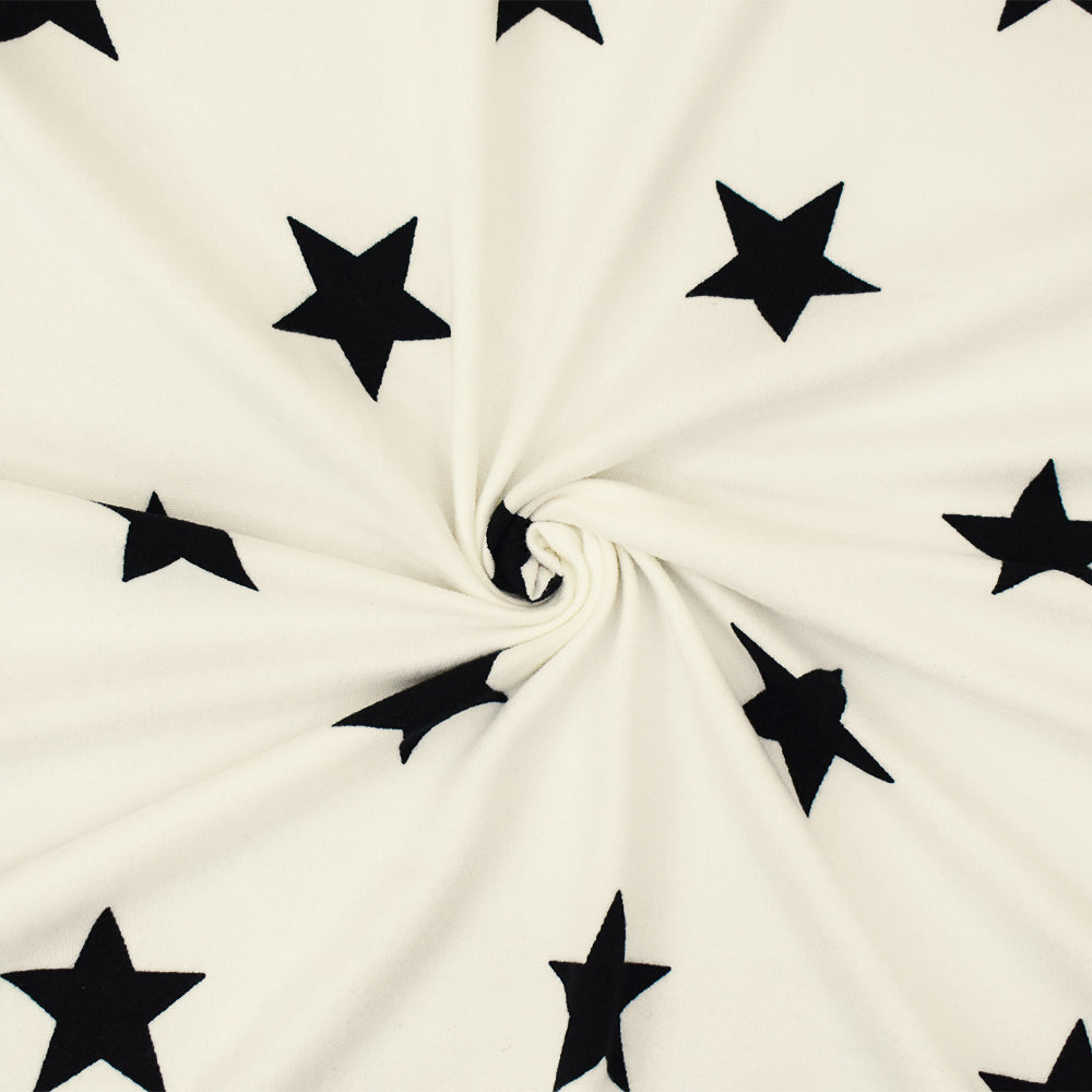 Ivory-Black Star Printed Poly Spandex Super Double Brush ITY Knit Fabric