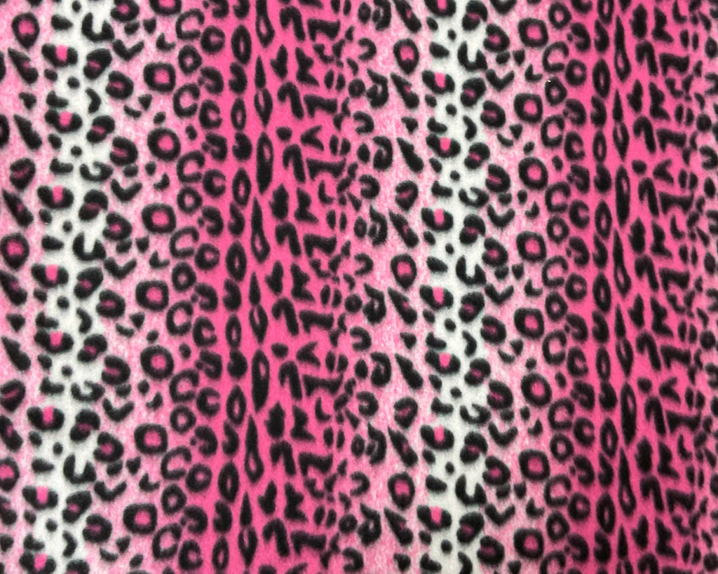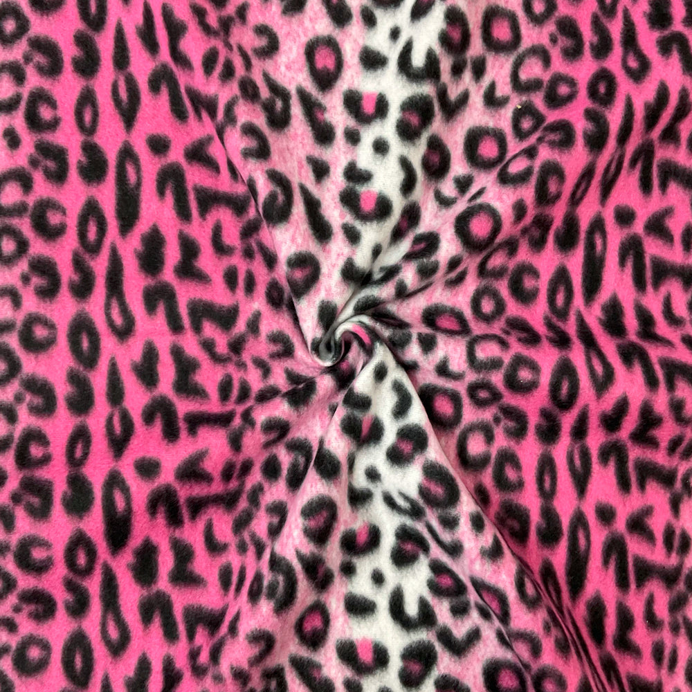 Pink-Black-White Polyester Leopard Printed Polar Fleece Knit Fabric