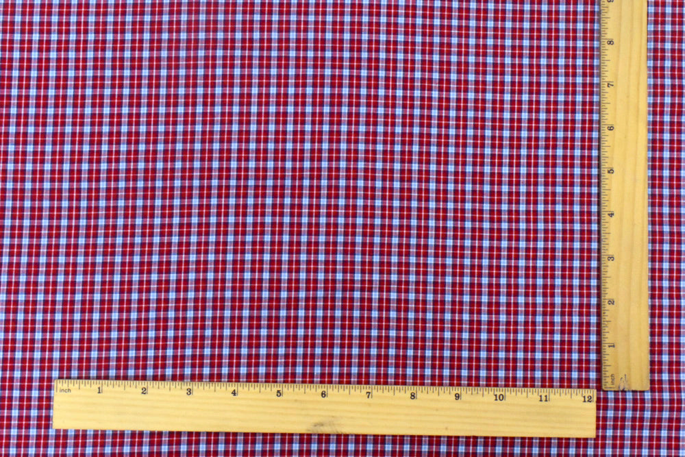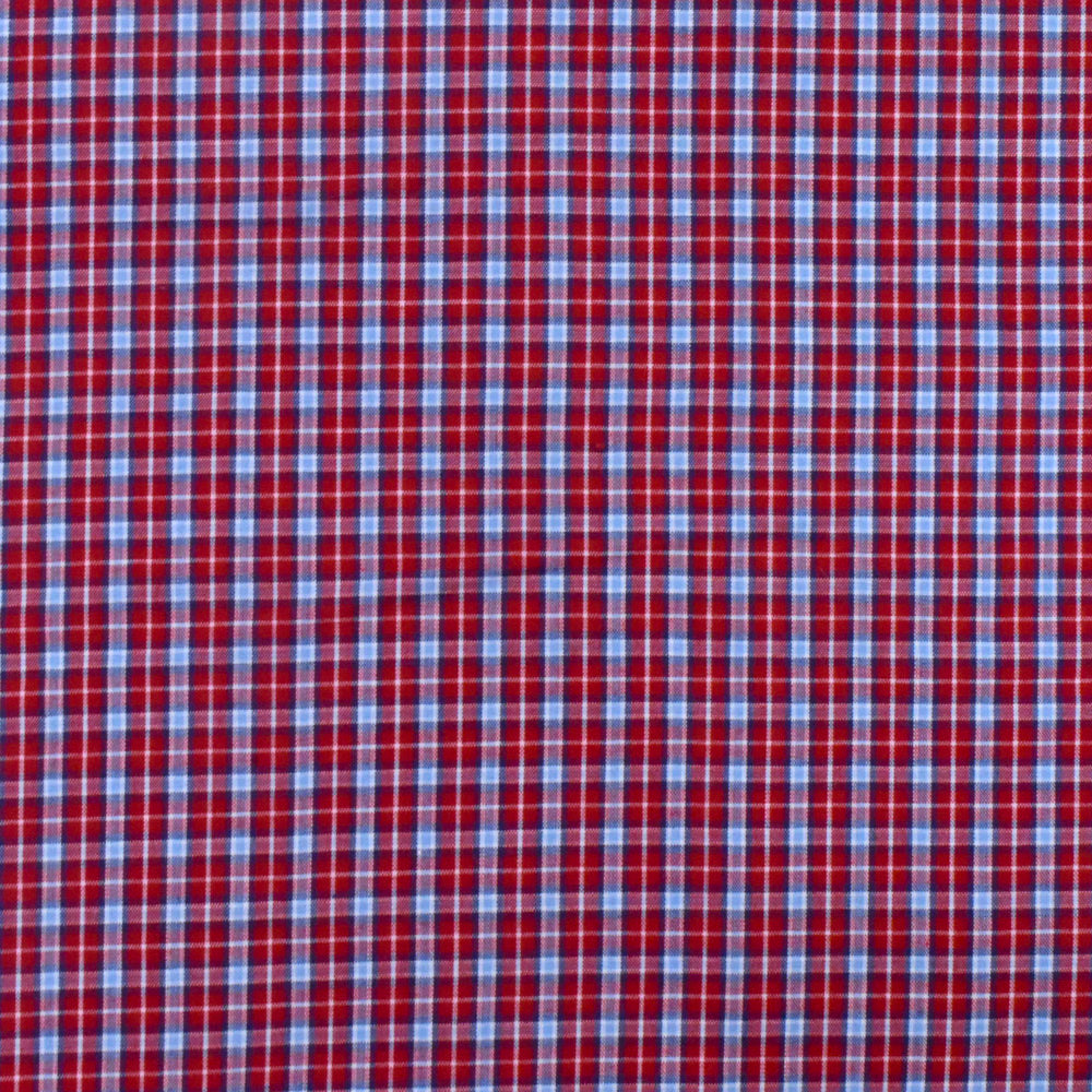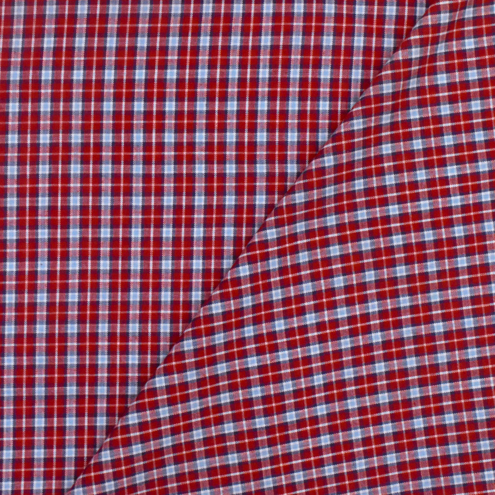 Red-Blue-Multi Plaid Cotton Polyester Madras Woven Fabric