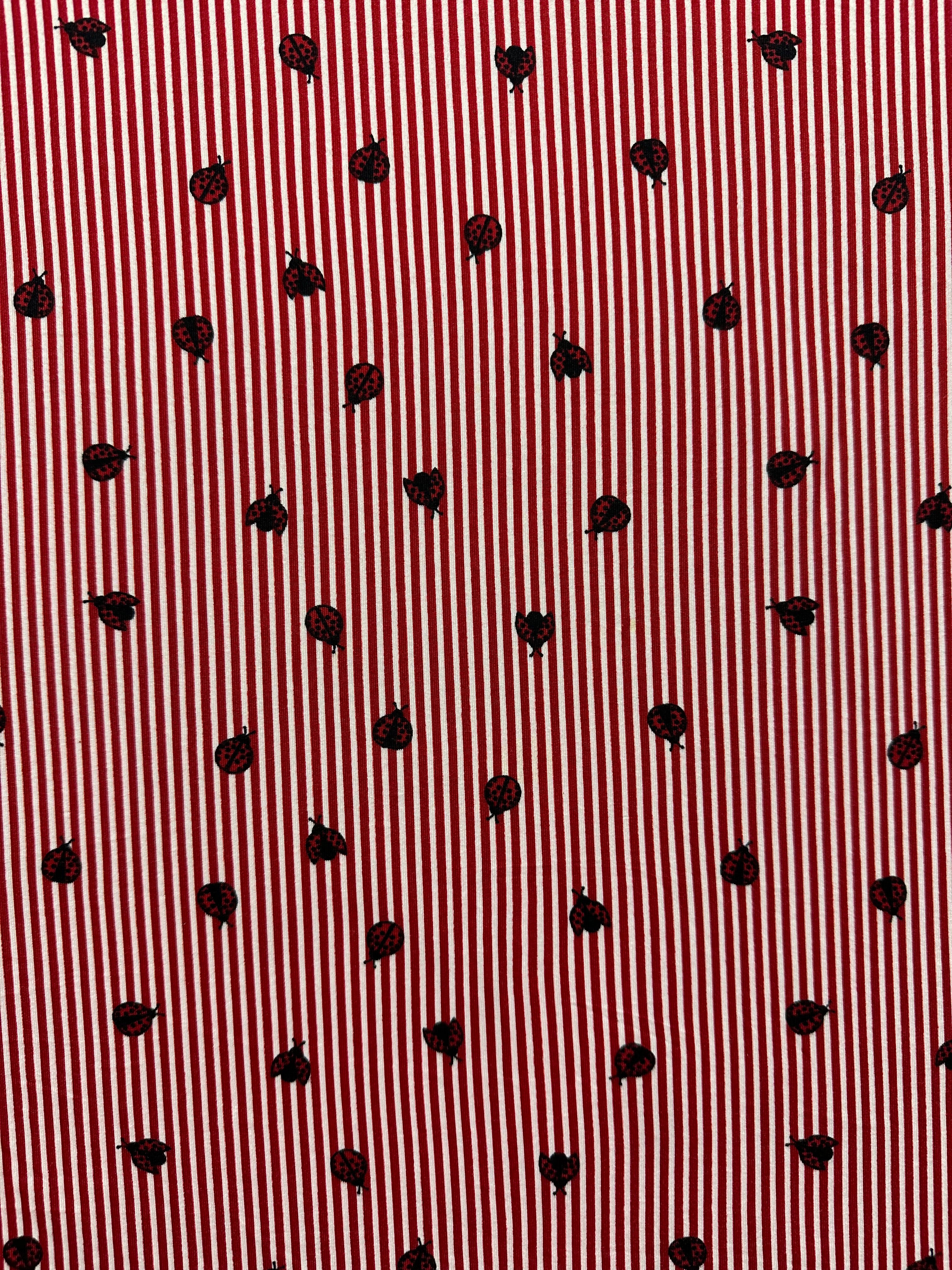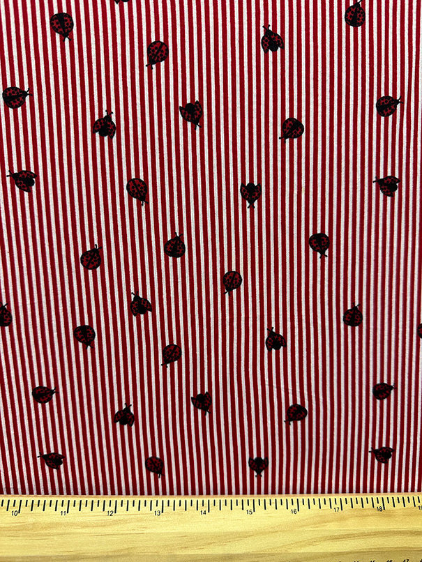 Red Stripe Ladybug Print Double Brushed Jersey Knit Fabric