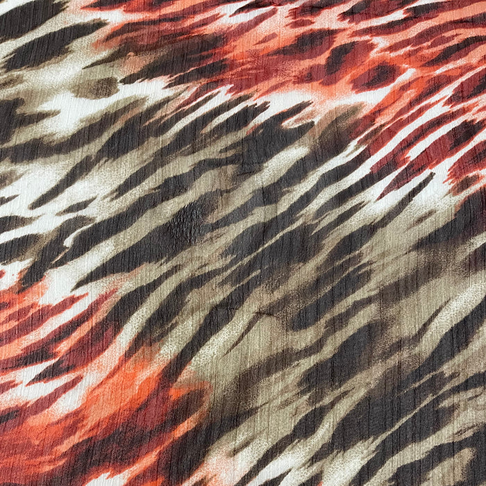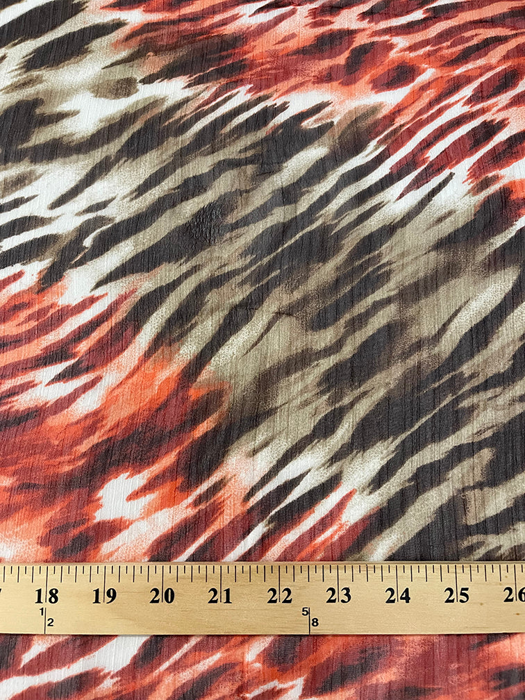 Red Multi Zebra Crinkled Print Chiffon Fabric