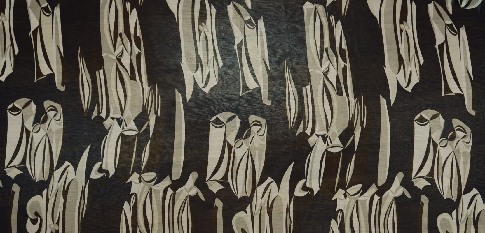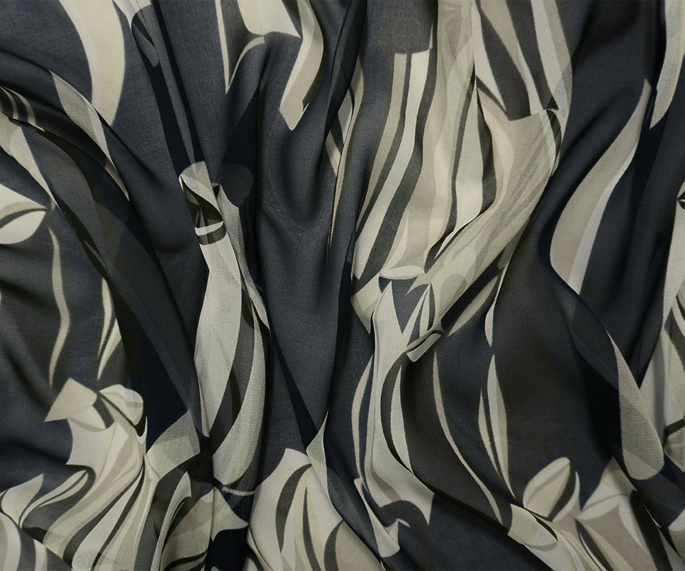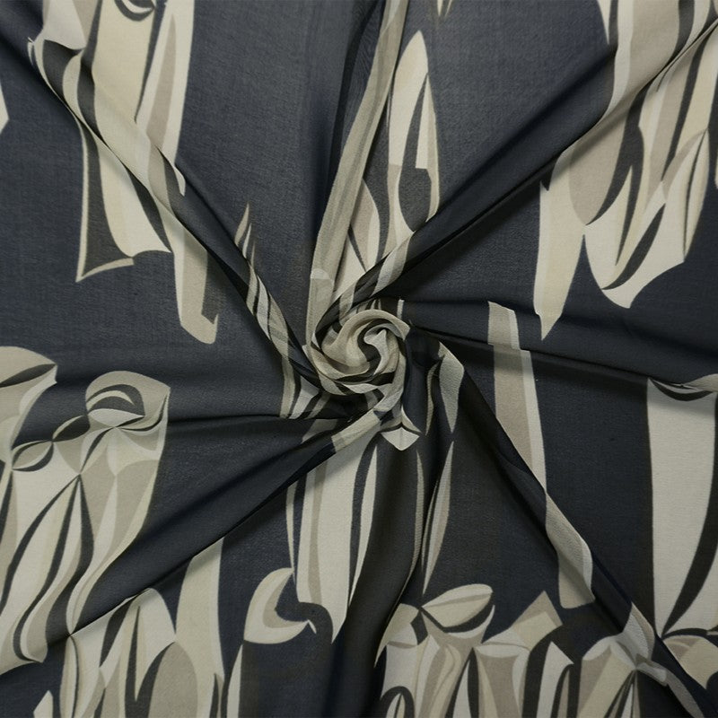 Beige-Multi Silk Abstract Printed Chiffon Woven Fabric