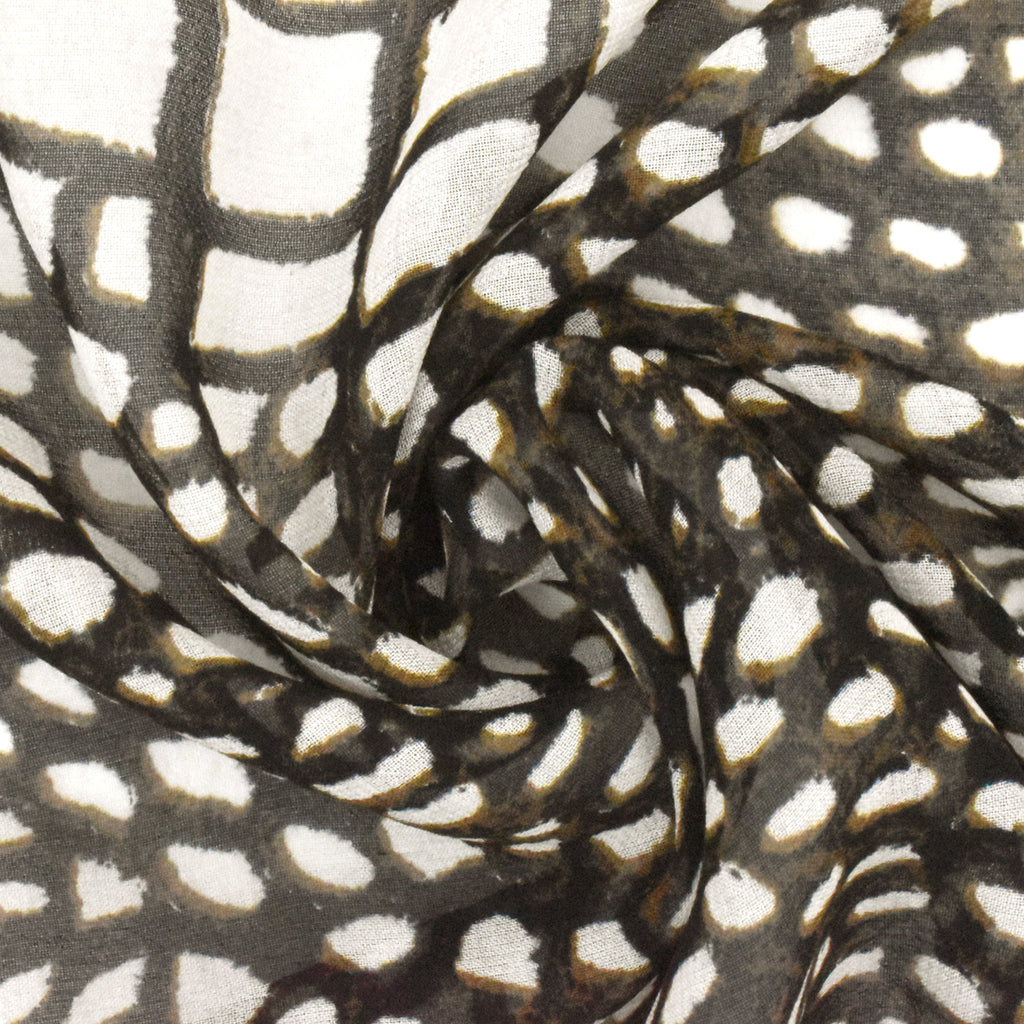 Black-Brown-Ivory Reptile Pattern Printed Silk Chiffon Fabric