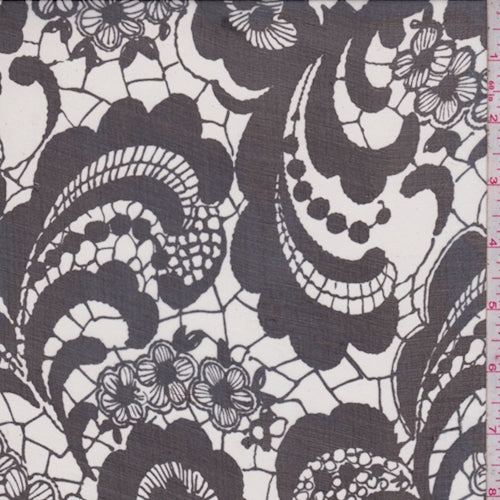Black/Pearl Lace Print Silk Chiffon Fabric