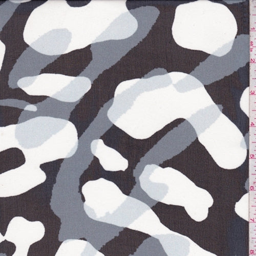 Black/White/Pewter Abstract Silk Chiffon Fabric