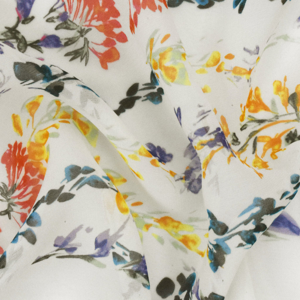 Ivory-Lavender-Multi Floral Border Frame Printed Silk Chiffon Fabric