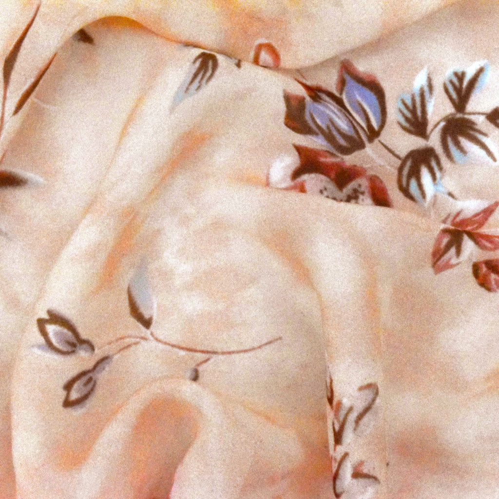 Peach Orange-Multi Floral Printed Silk Chiffon Fabric