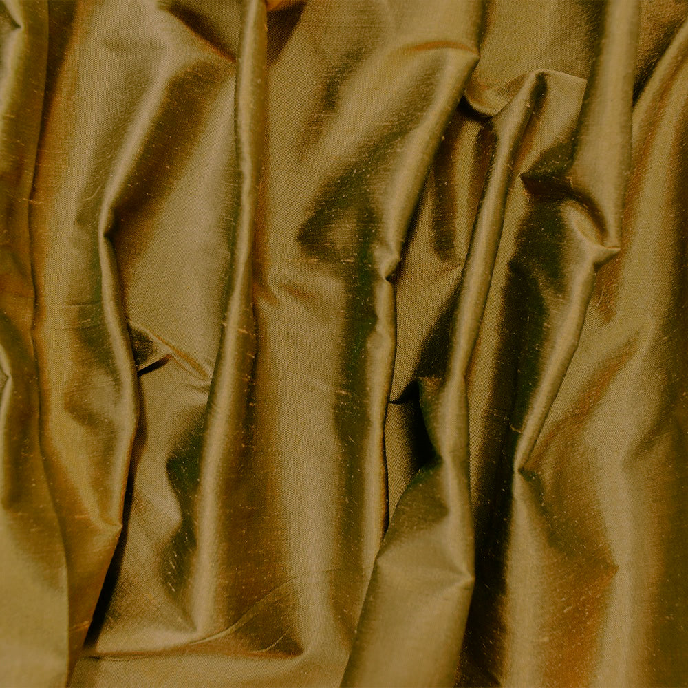 Light Brown-Green Beige Silk Iridescent Dupioni Woven Fabric