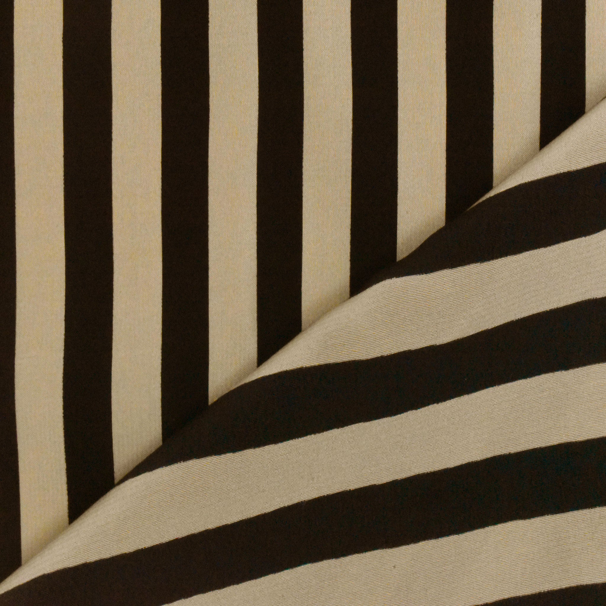 Taupe Beige-Black Stripe Printed Silk Crepe De Chine Woven Fabric