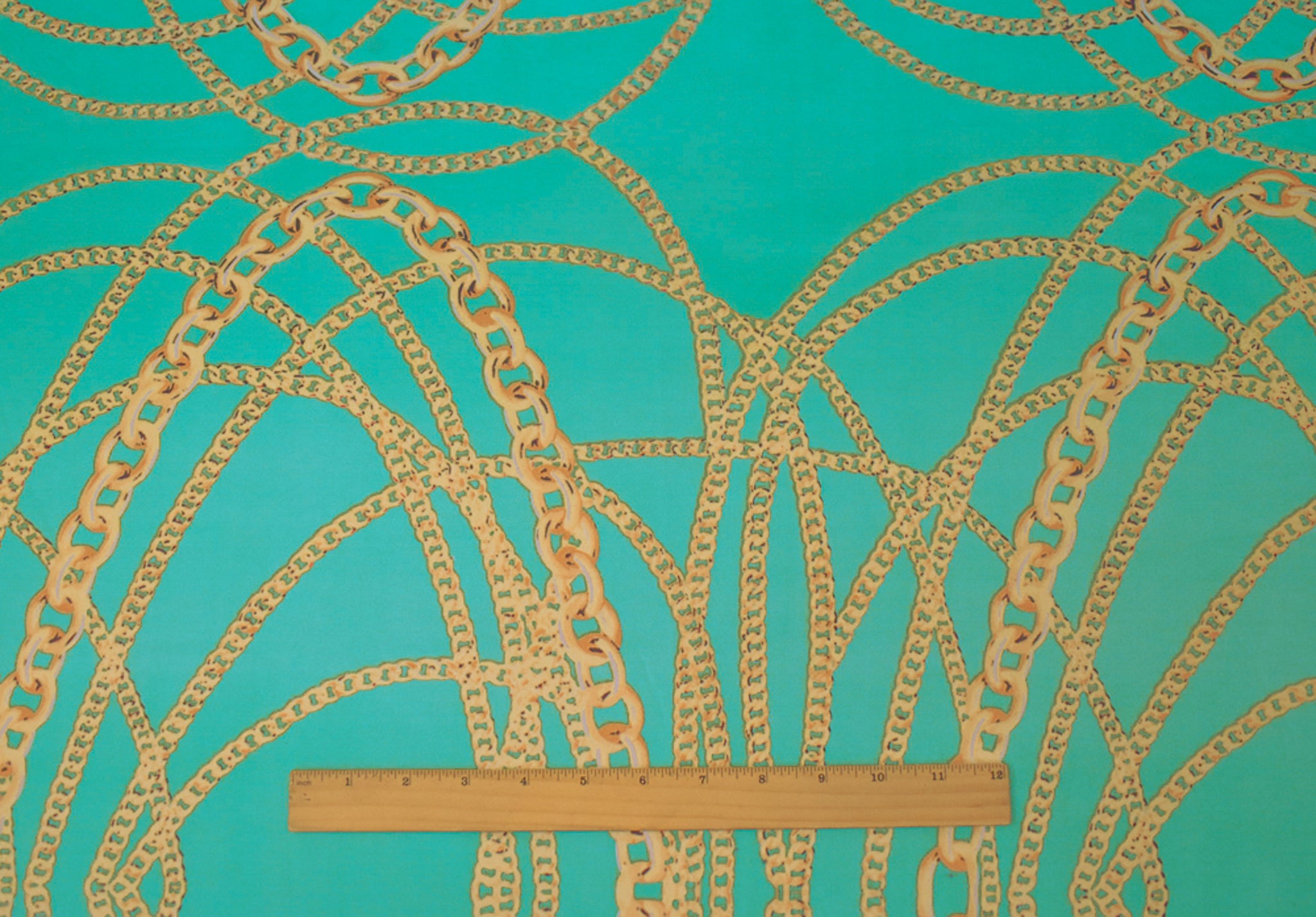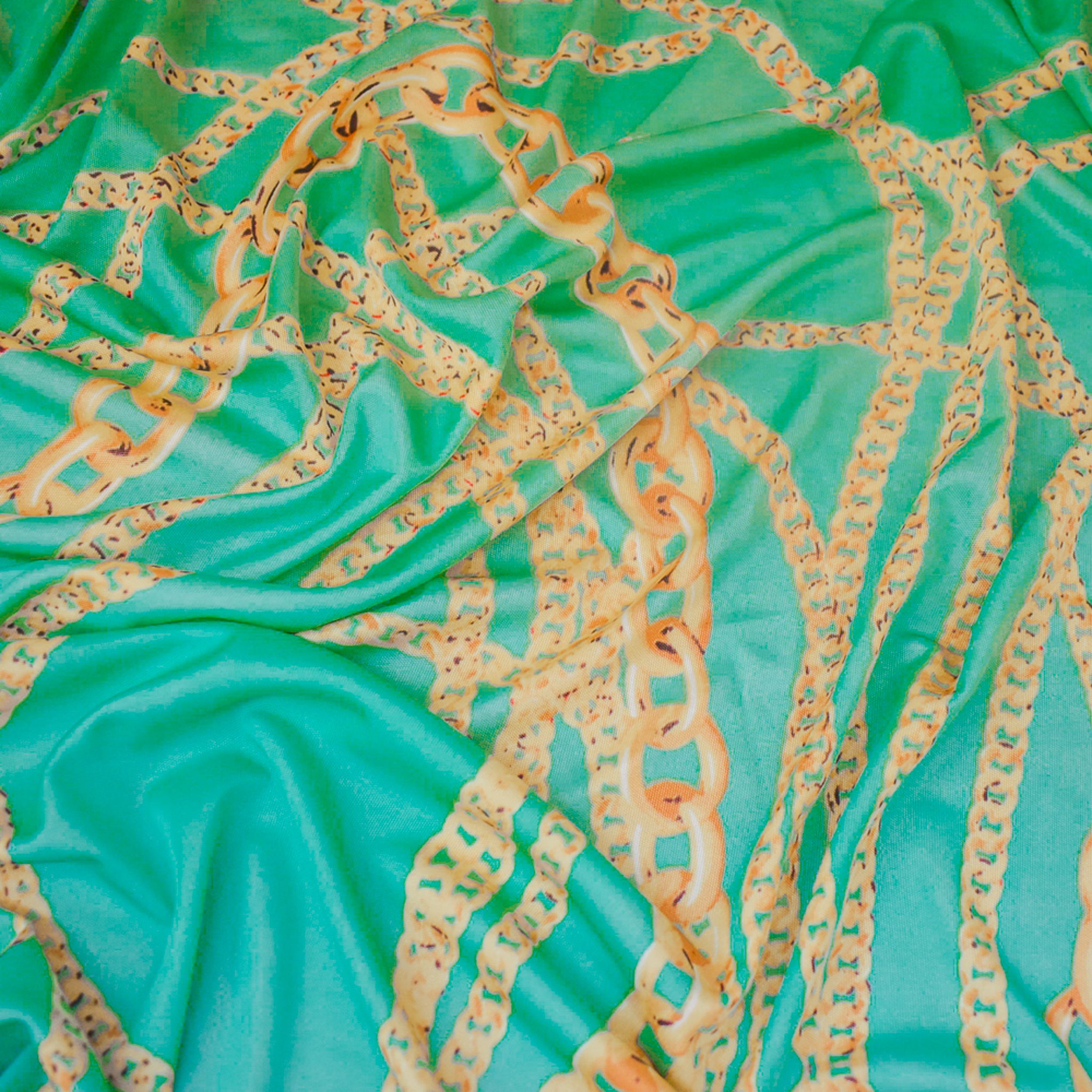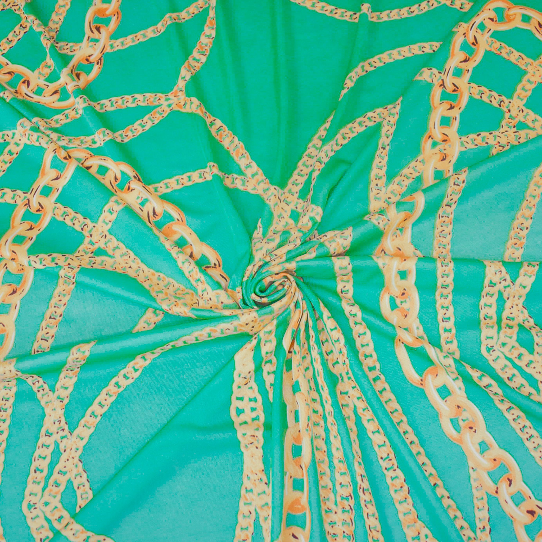 Aqua Teal-Multi Chain Printed Stretch Silk Jersey Knit Fabric