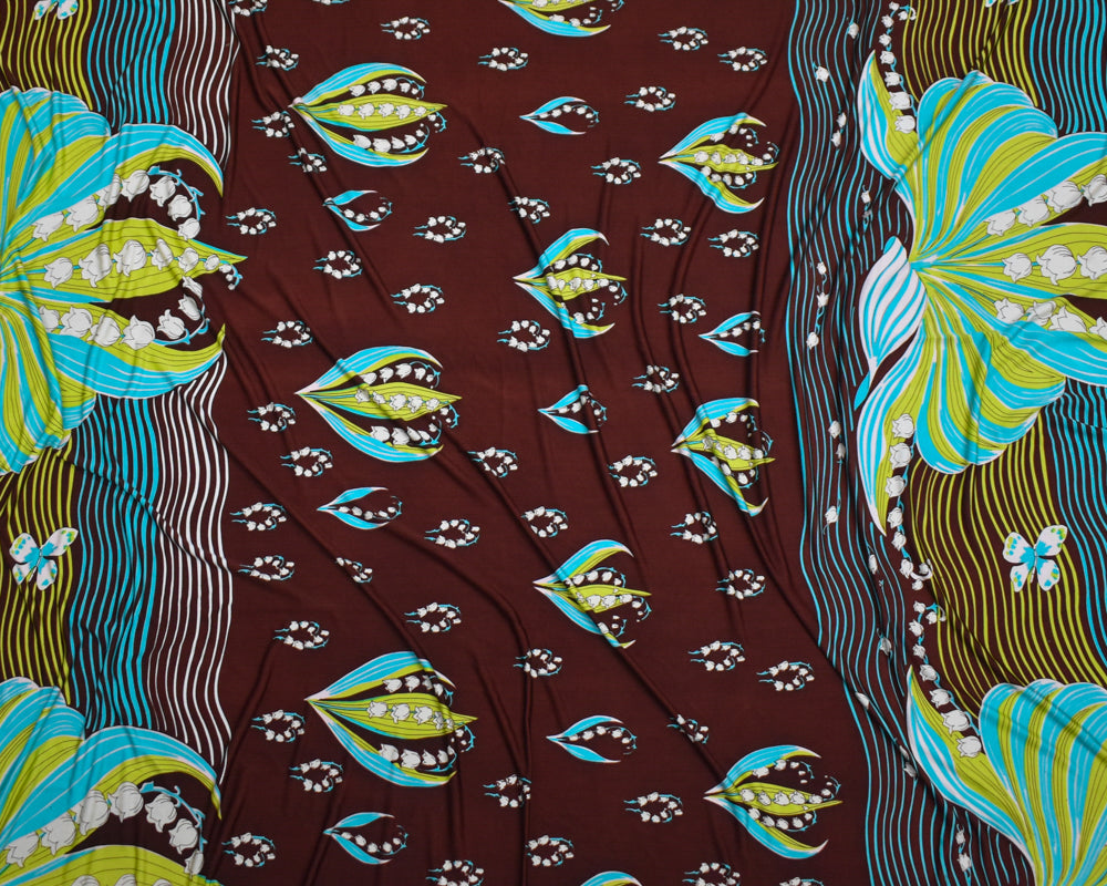 Brown-Lime-Multi Floral Wave Printed Stretch Silk Jersey Knit Fabric
