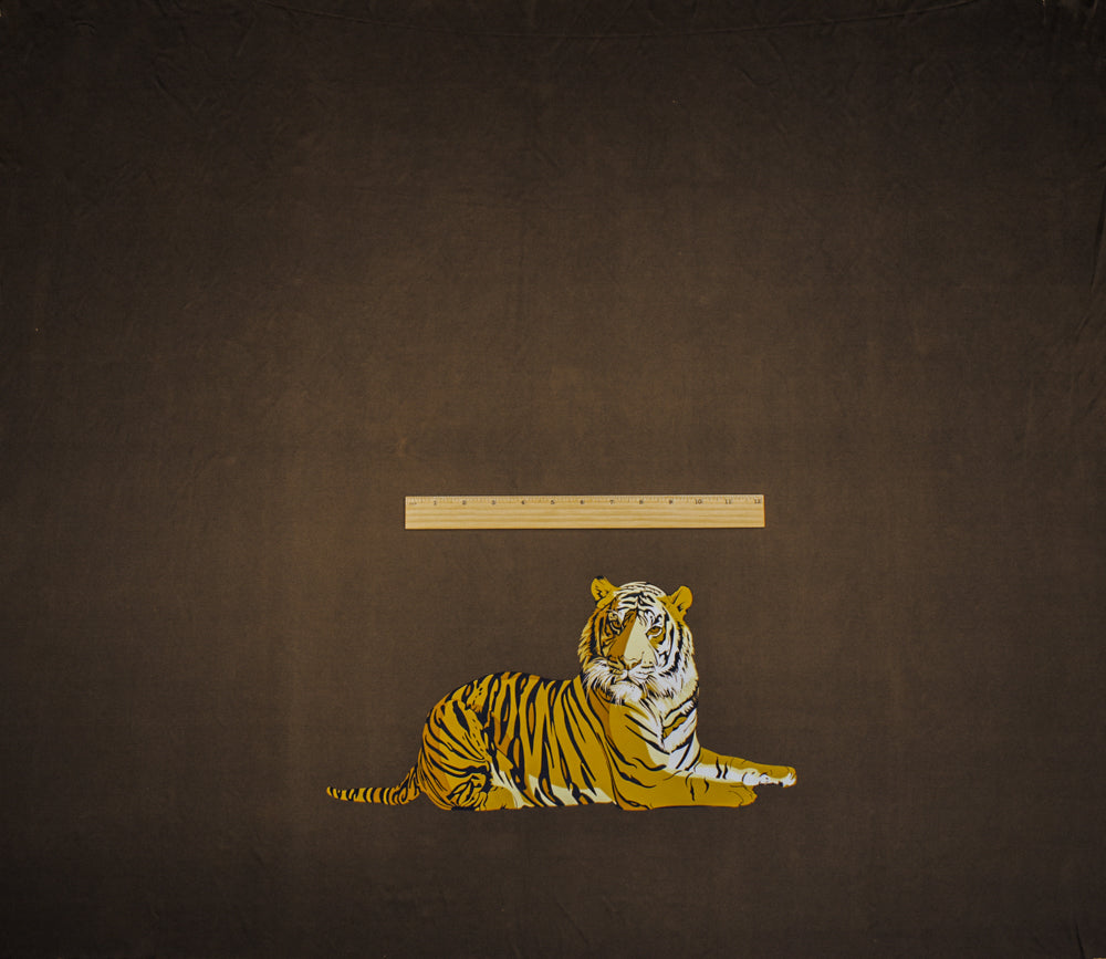 Brown-Yellow-Multi Tiger Motif Panel Printed Stretch Silk Jersey Knit Fabric