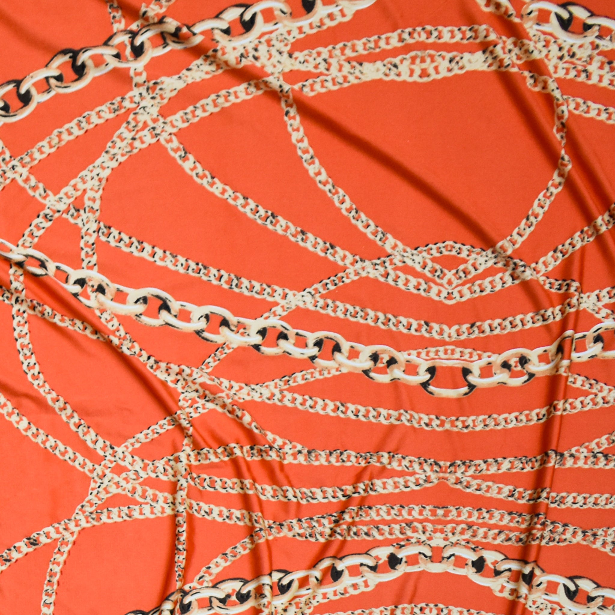 Orange-Beige-Multi Chain Printed Stretch Silk Jersey Knit