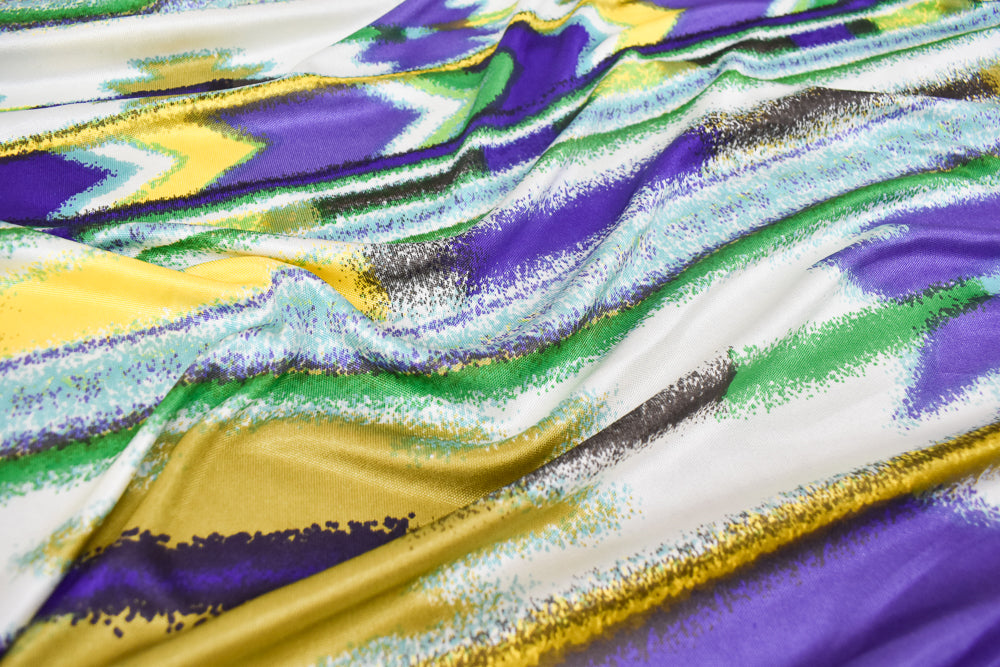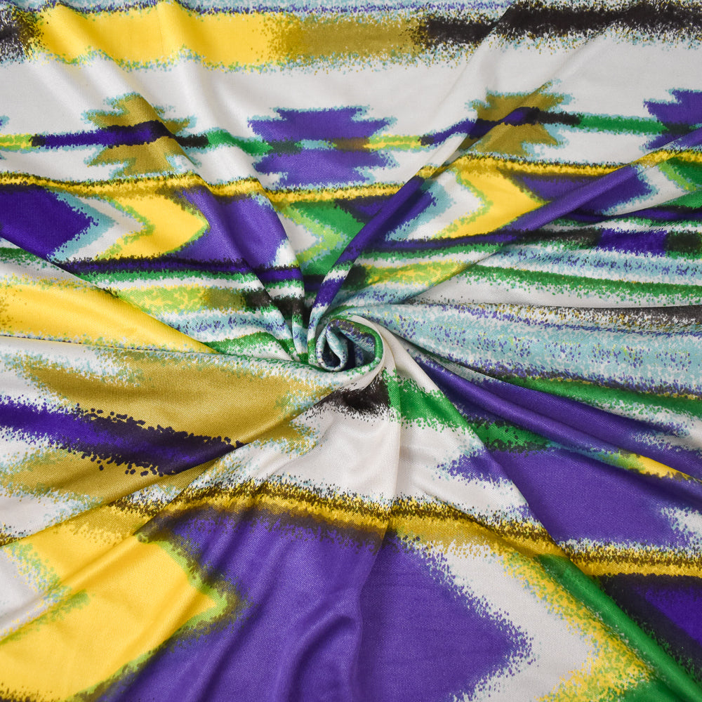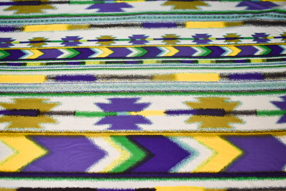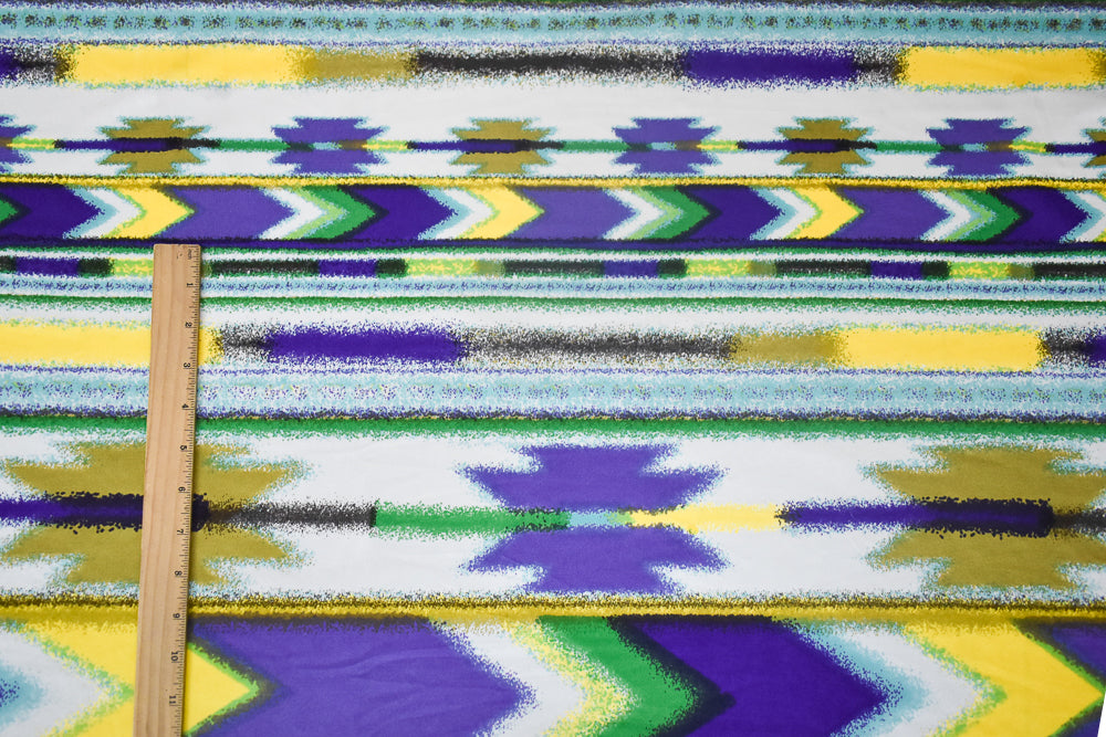 Purple-Yellow Multi Abstract Aztec Stripe Printed Stretch Silk Jersey Knit Fabric