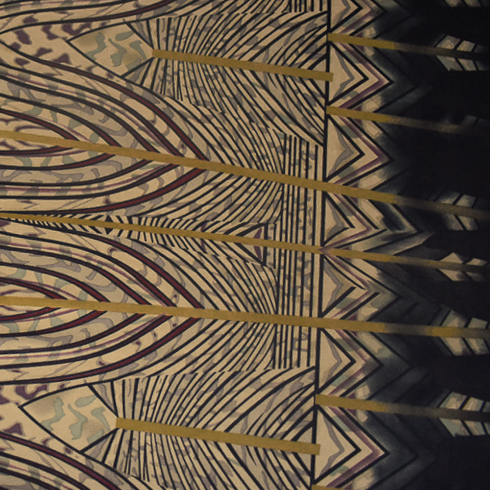 Taupe-Black-Multi Abstract Aztec Printed Stretch Silk Jersey Knit Fabric