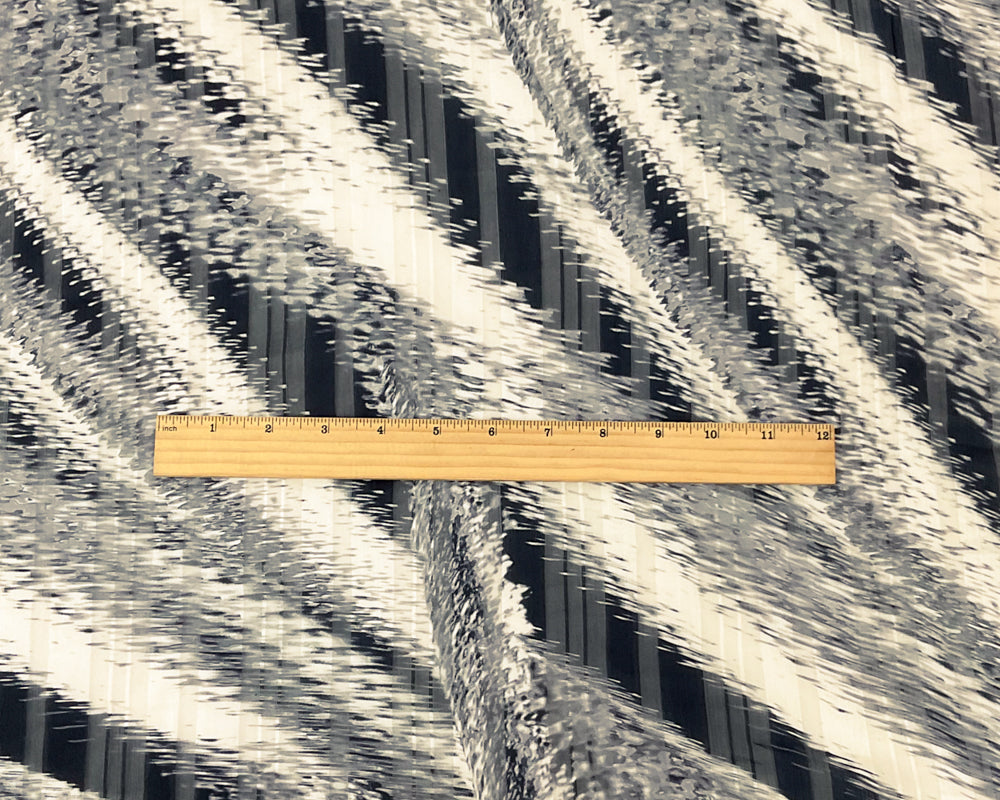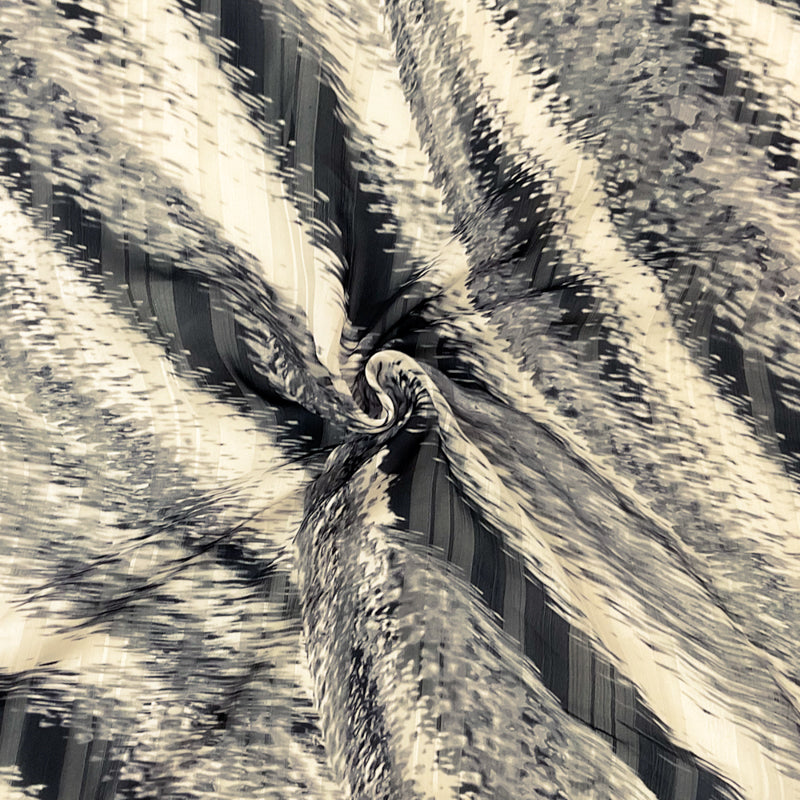 Black-Multi Poly Abstract Print Satin Stripe Chiffon Woven Fabric