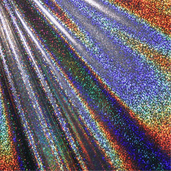 Metallic Silver Hologram Mini Dot Print on Black Spandex Fabric 4 Way Stretch Suitable for Dancewear, Apparel, & Costumes 80% Nylon 20% Spandex 58" Wide