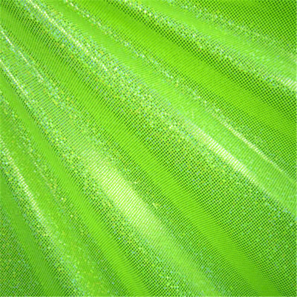 Metallic Silver Hologram Dot Print on Lime Green Spandex Fabric 4 Way Stretch Suitable for Dancewear, Apparel, & Costumes 80% Nylon 20% Spandex 58" Wide
