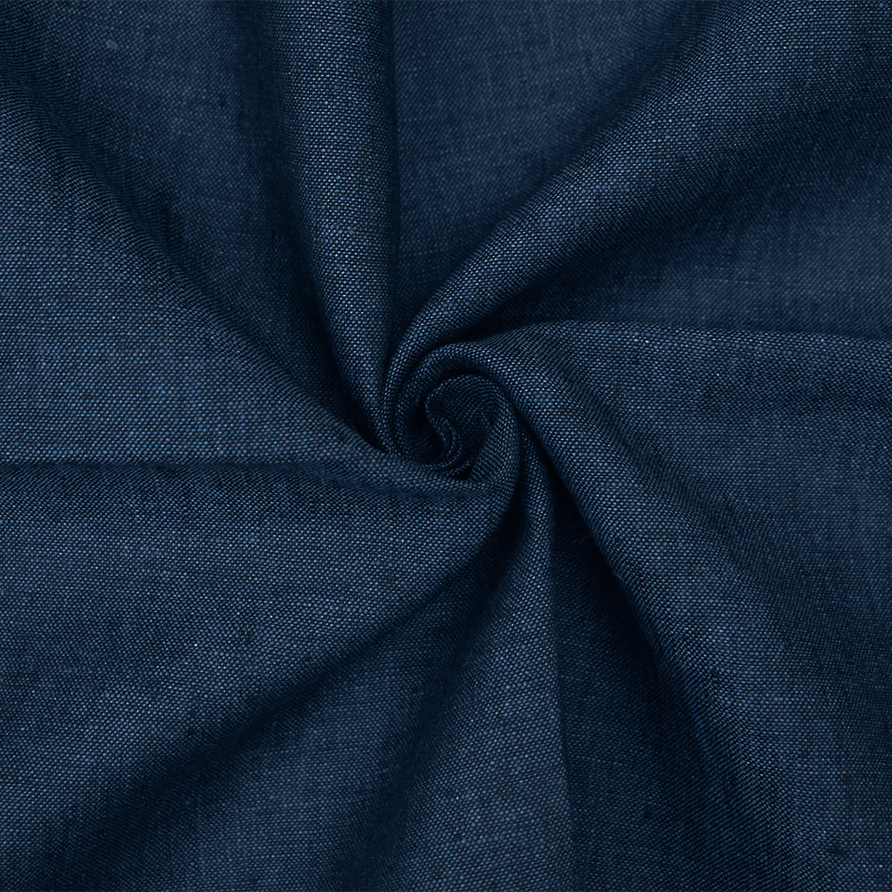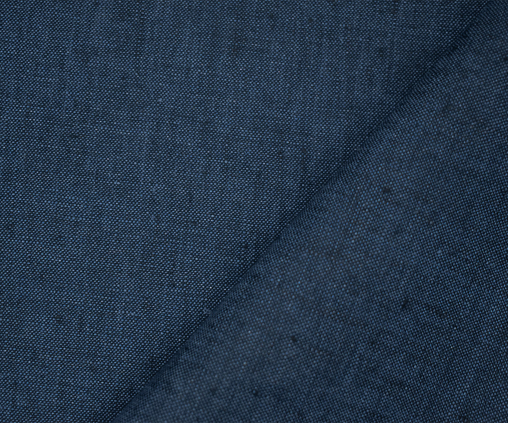 -203 gsm, 100% linen Spence Bryson Toibin slubbed texture chambray woven fabric with a compord finish. Line if needed. Made in Ireland.