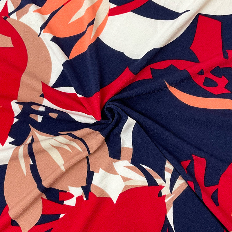 -Blue-Red-Multi Poly Stretch Spandex Floral Printed Jersey Knit Fabric