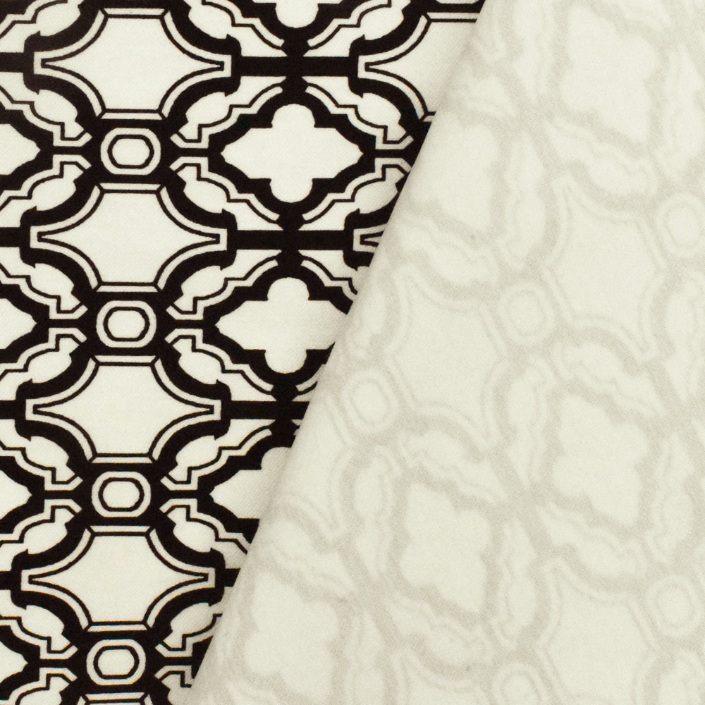 Ivory-Black Fancy Quatrefoil Printed Stretch Twill Woven Fabric