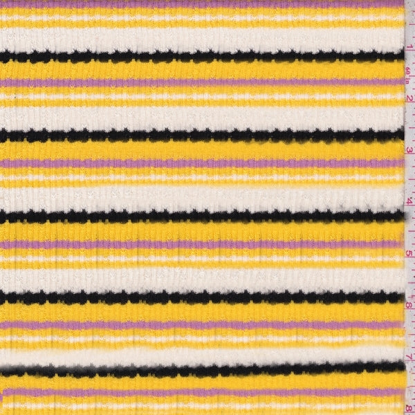 White Multi Stripe Pointelle Tshirt Knit Fabric