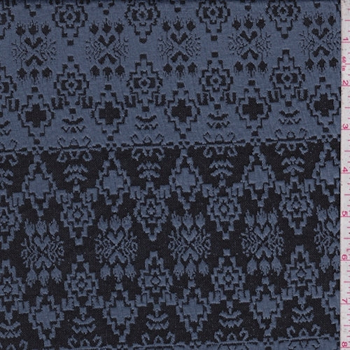 1 YD PC-Pewter Blue/Black Aztec Stripe Jacquard Double Knit Fabric