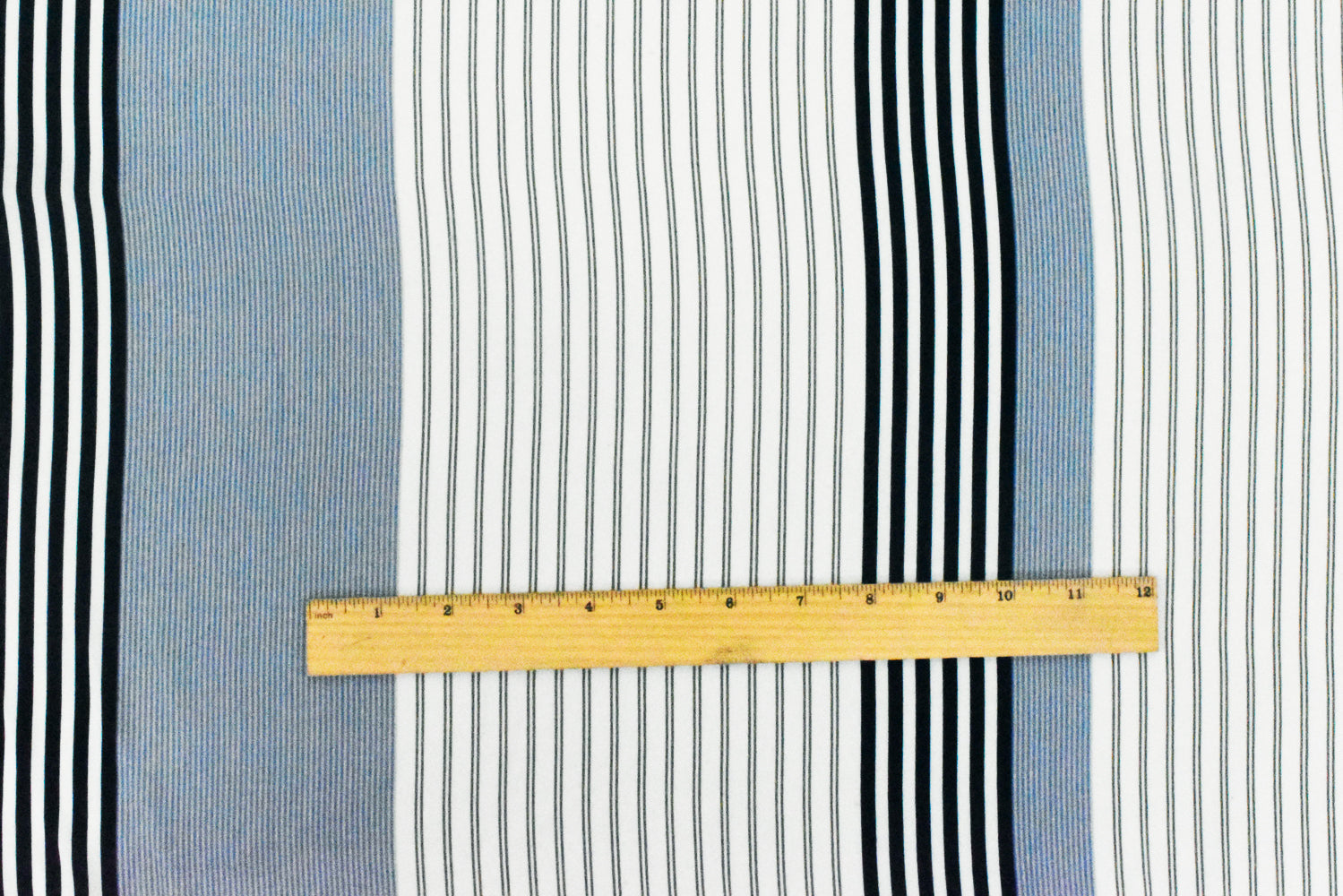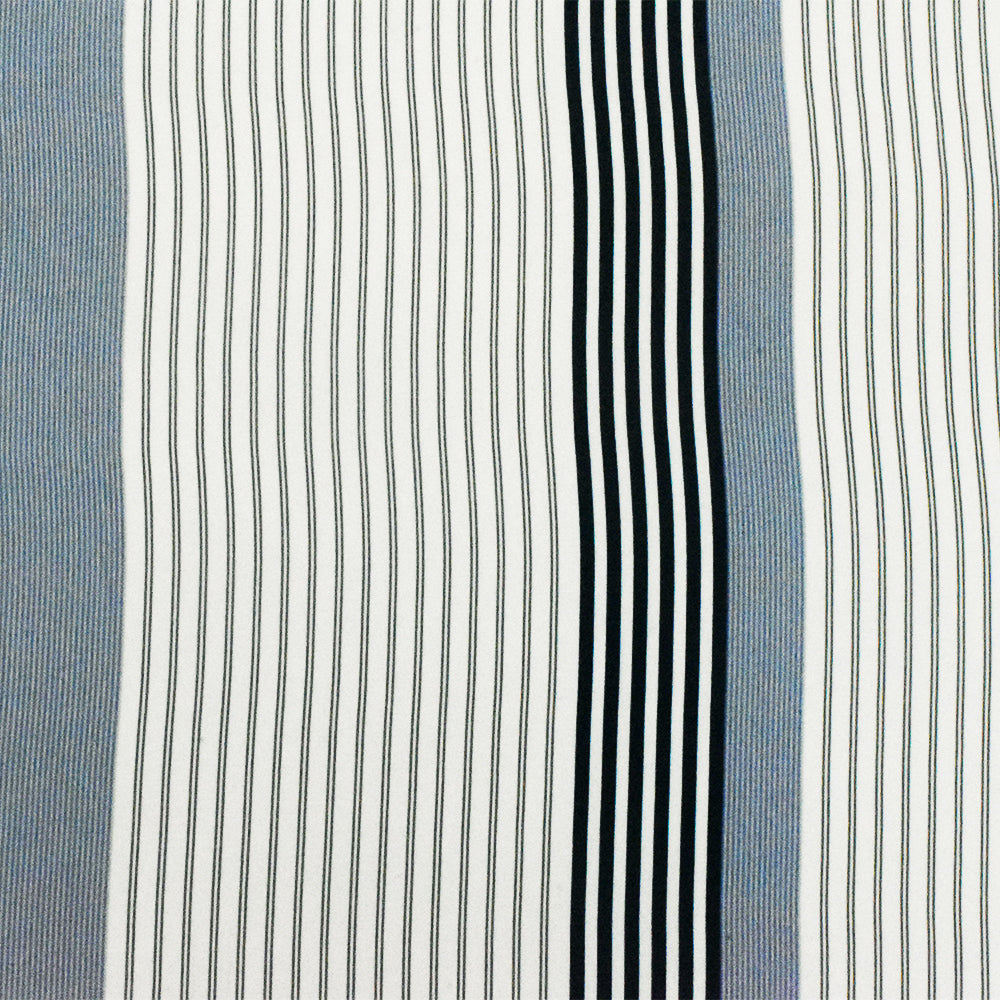 Basic White-Blue-Multi Stripe Printed Poly Twill Woven Fabric