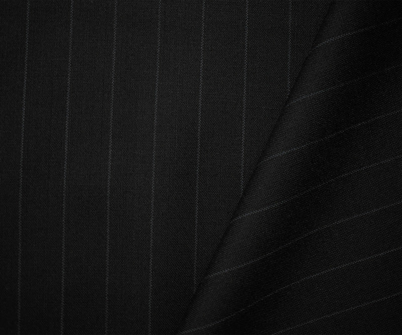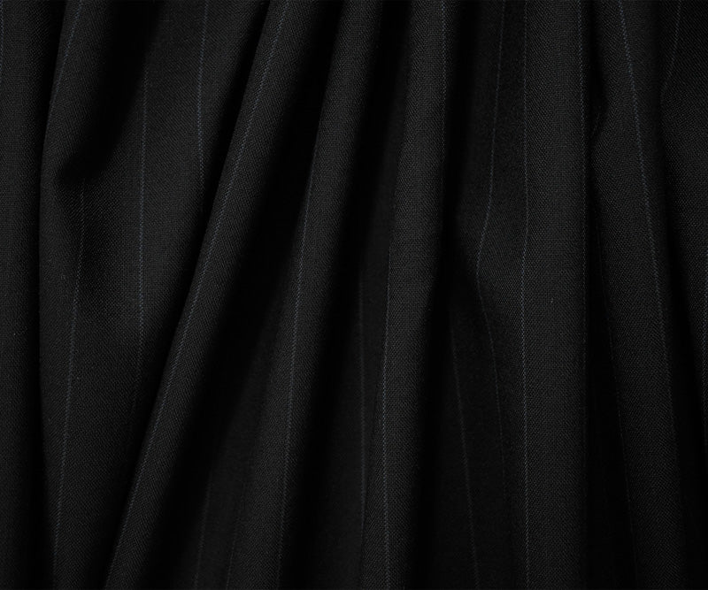 -Showcasing a sharp black-gray stripe, this wool-rayon shirting offers comfort and a tailored appearance. Its woven construction is designed for sophisticated and durable dress shirts.