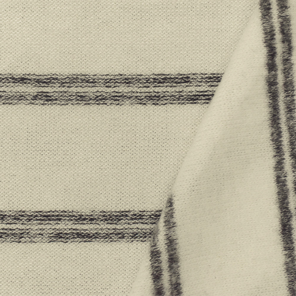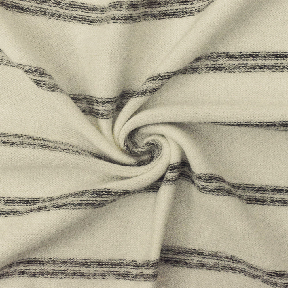 Gray-Ivory Stripe Stretch Poly Blend Brushed Face Jersey Knit Fabric