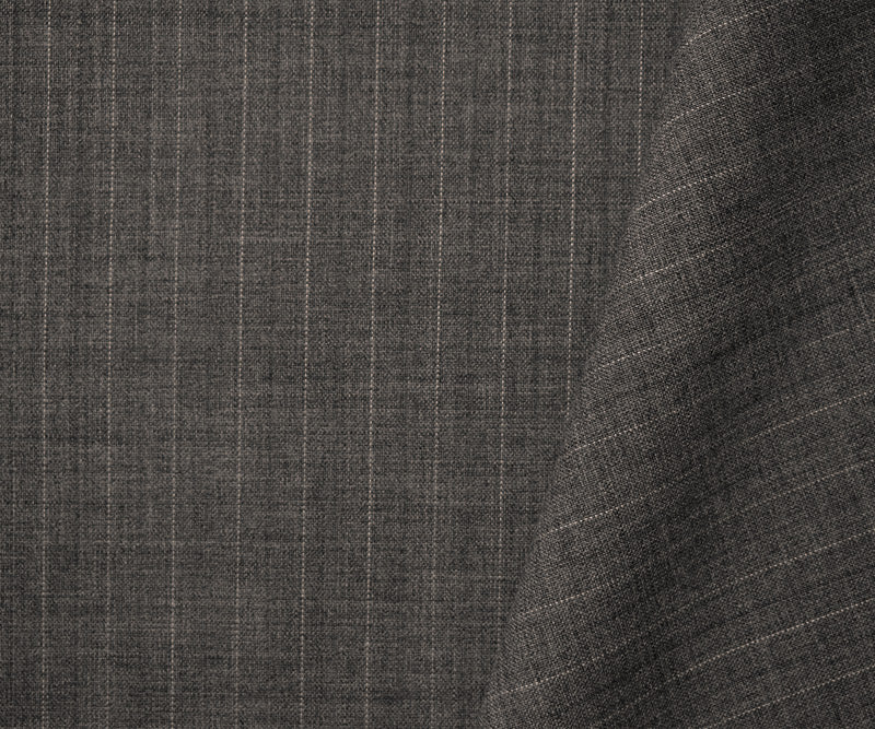 -This gray-white striped fabric combines wool and polyester for a crisp, professional look. The woven construction is ideal for creating durable and comfortable dress shirts with a classic appeal.