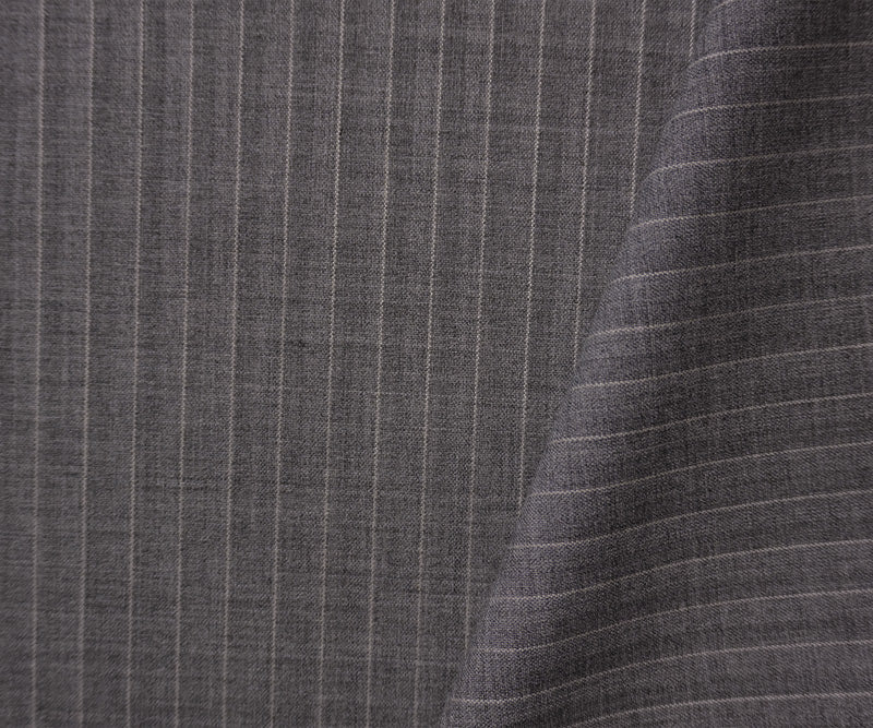 Gray Wool Poly Stripe Woven Shirting Fabric