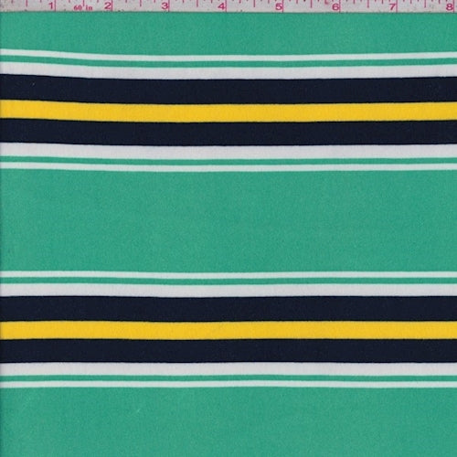 Jade/Navy/Yellow Stripe Double Brushed Jersey Knit Fabric